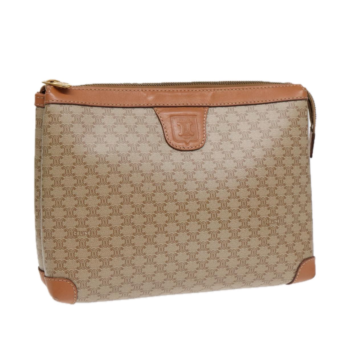 CELINE Macadam Canvas Clutch Bag Beige Gold Auth 88526