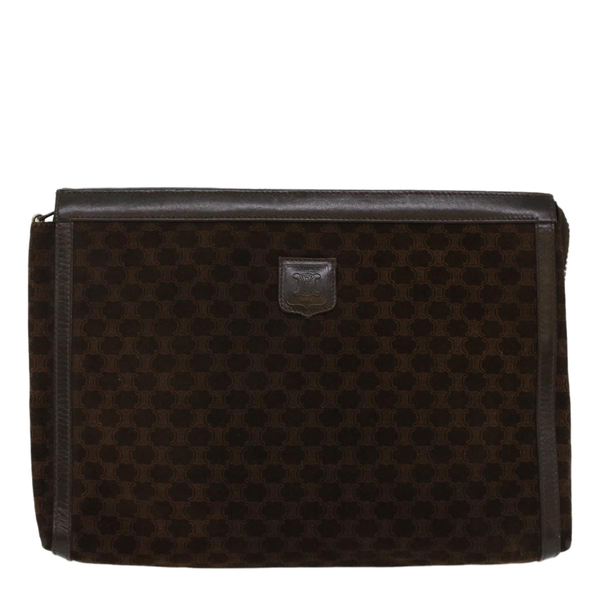 Celine Macadam Canvas Clutch Bag Leather Brown Auth bs7545