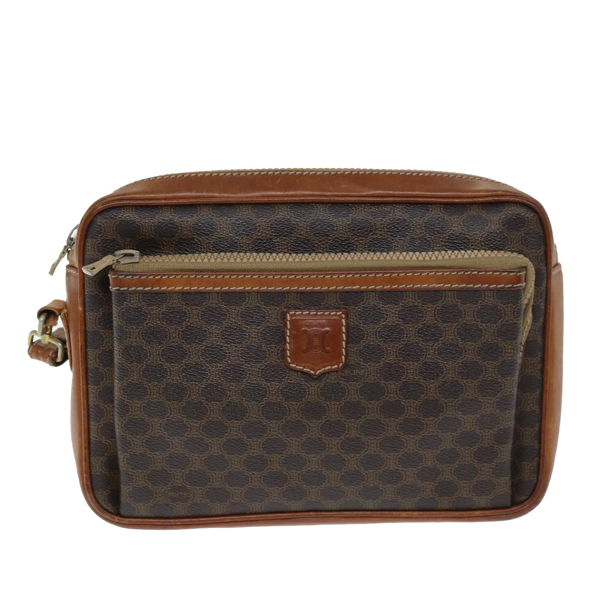 CELINE Macadam Canvas Clutch Bag PVC Brown Auth bs14536