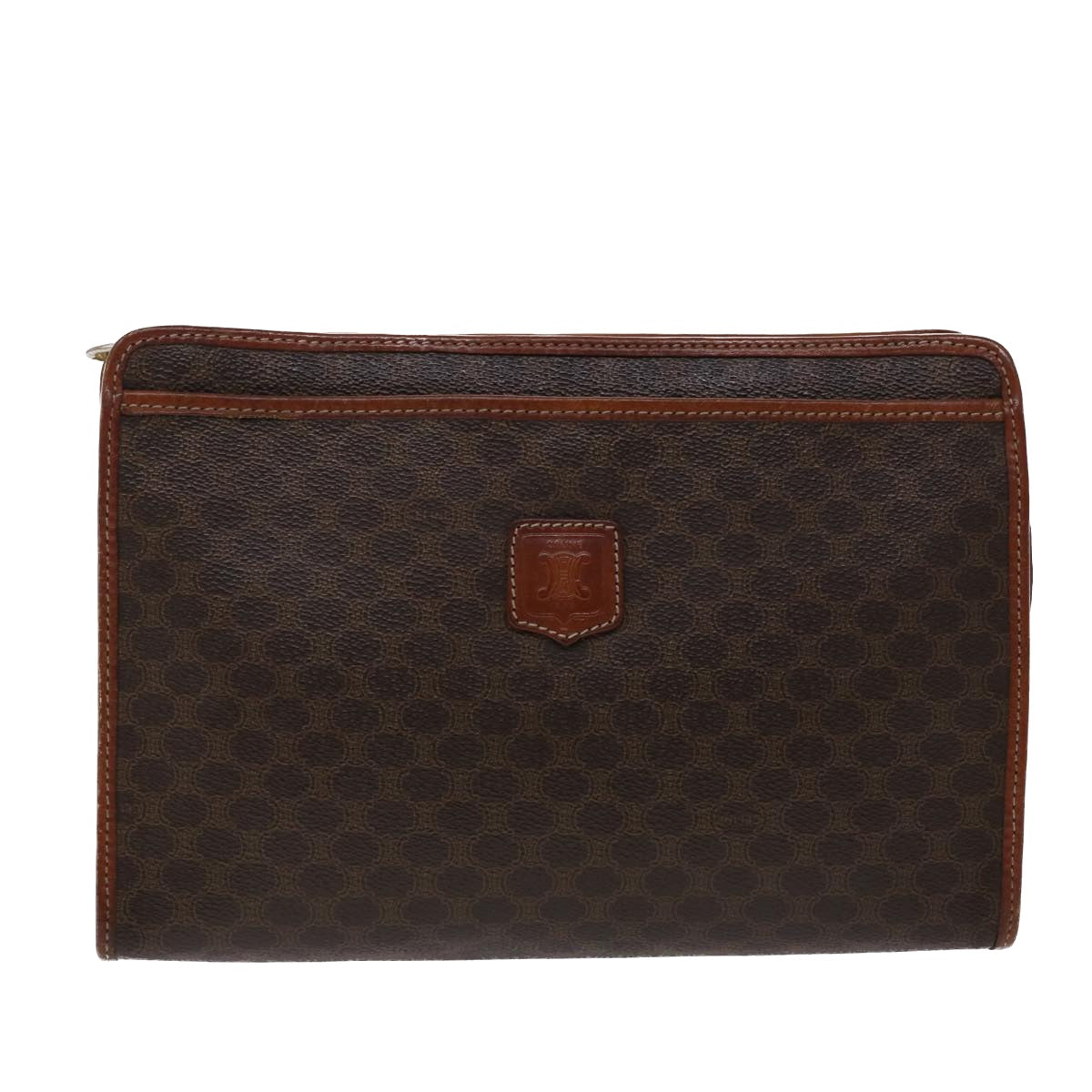 Celine Macadam Canvas Clutch Bag PVC Leather Brown 48331