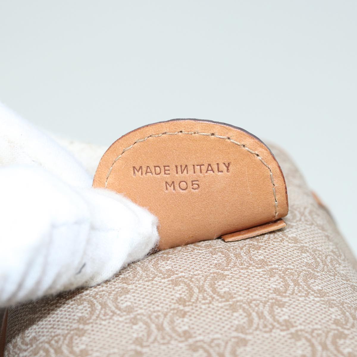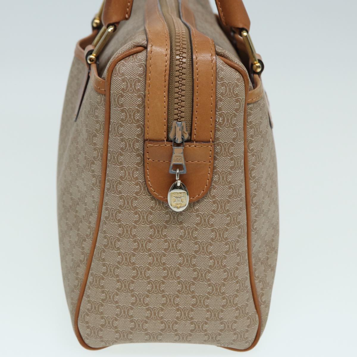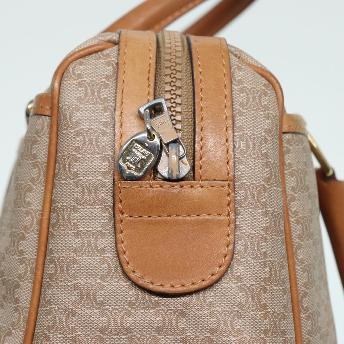 CELINE Macadam Canvas Hand Bag Leather Beige Auth 83931