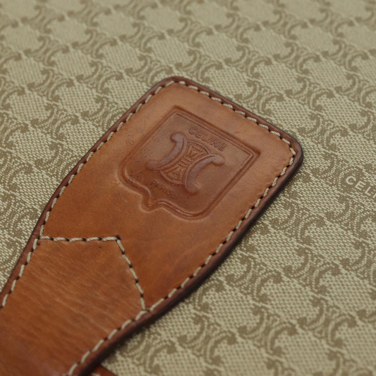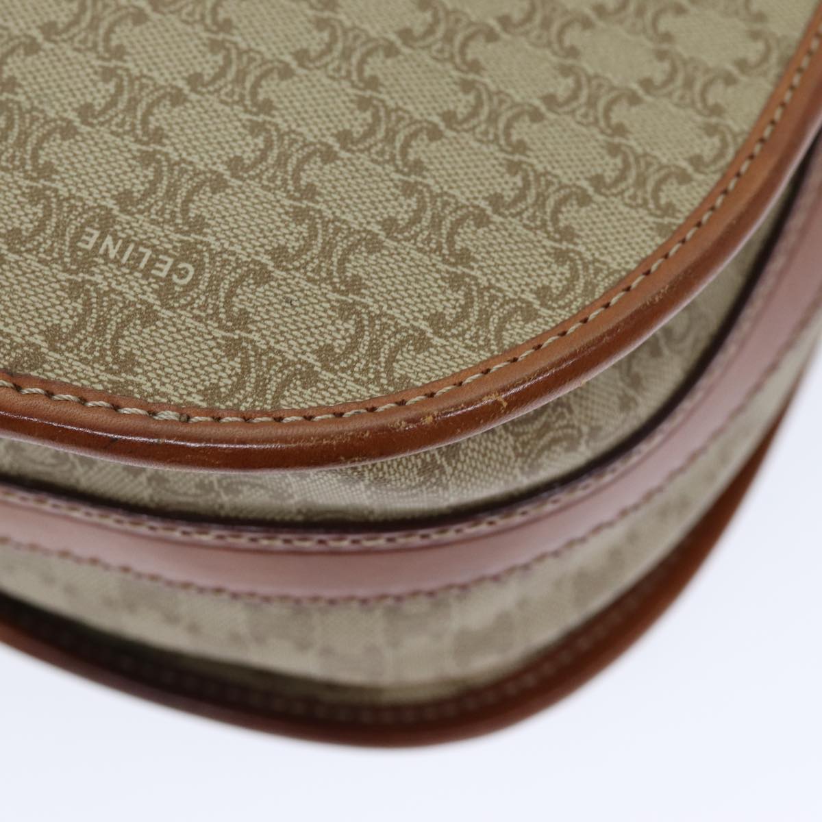 CELINE Macadam Canvas Shoulder Bag Beige Auth 73028