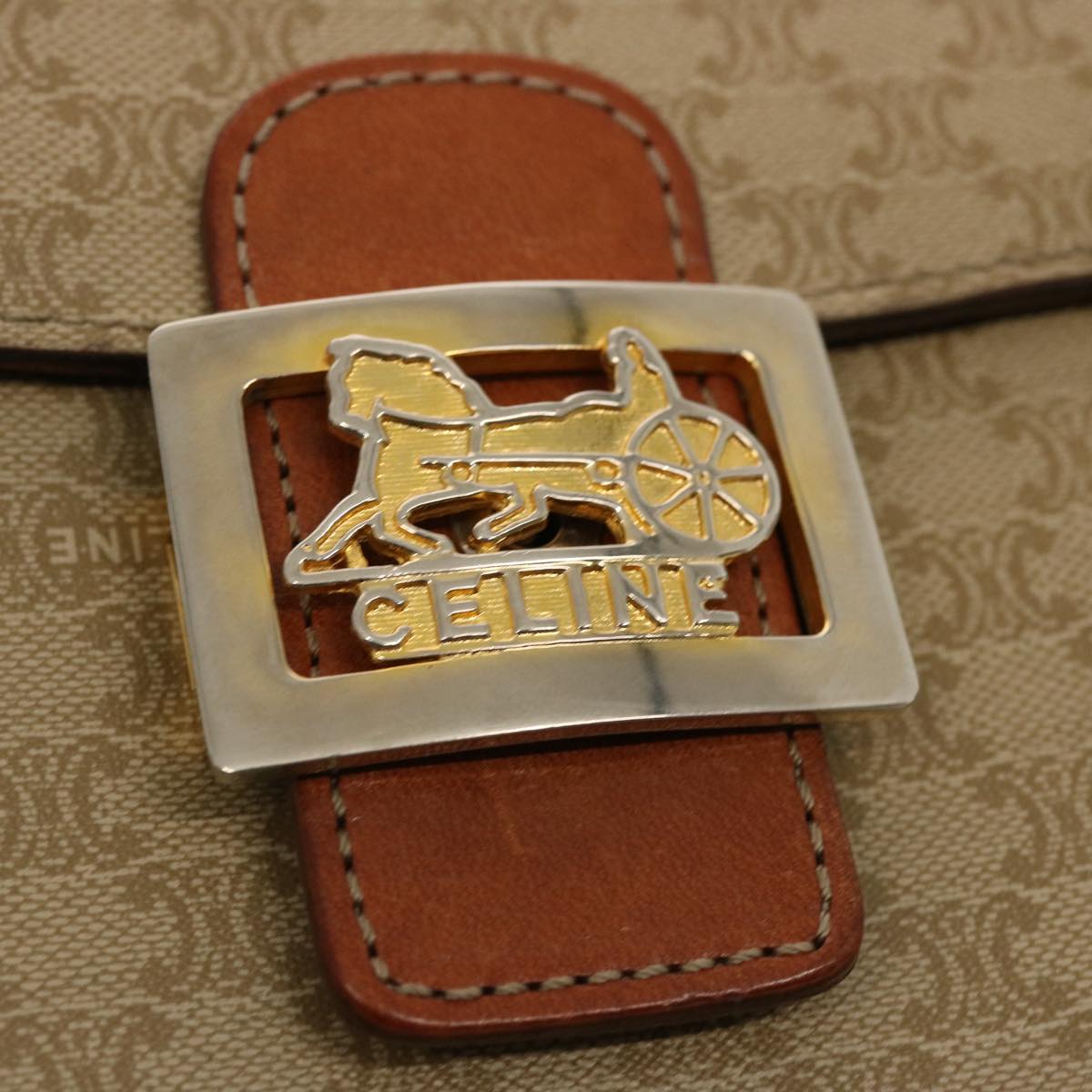 CELINE Macadam Canvas Shoulder Bag Beige Auth 73295