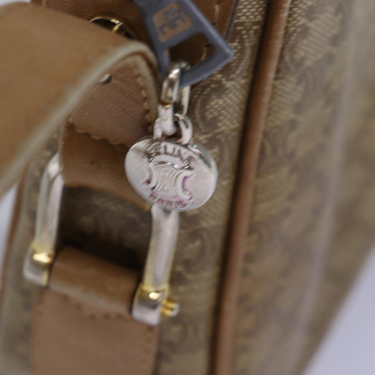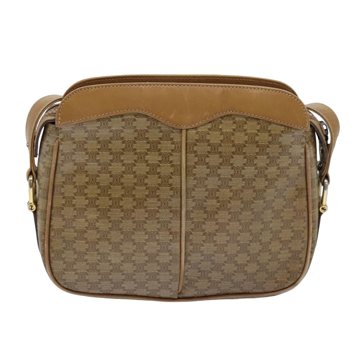CELINE Macadam Canvas Shoulder Bag Beige Auth 76409