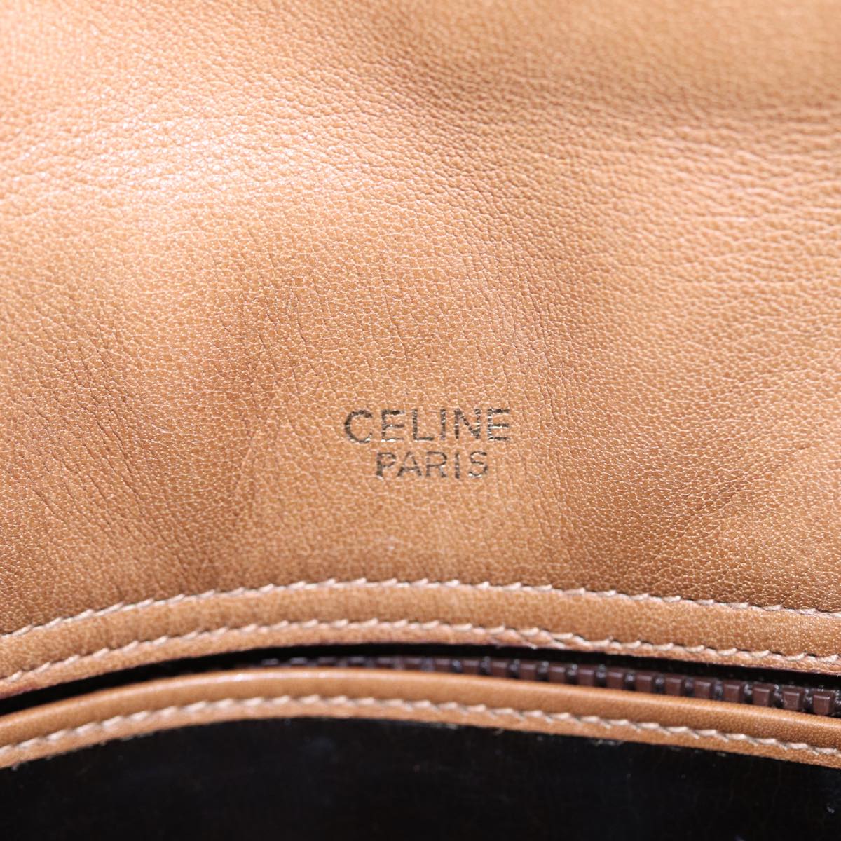 CELINE Macadam Canvas Shoulder Bag Beige Gold Auth 86867