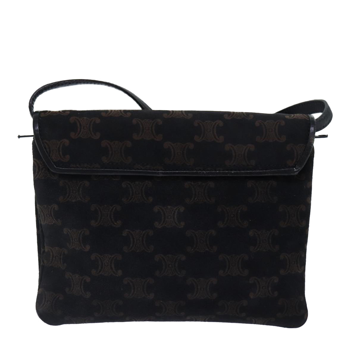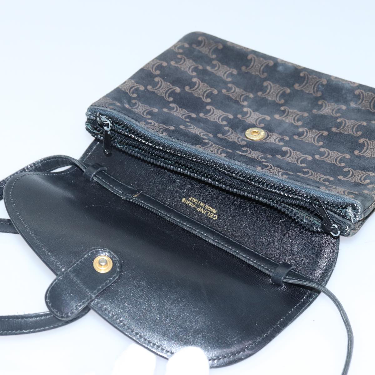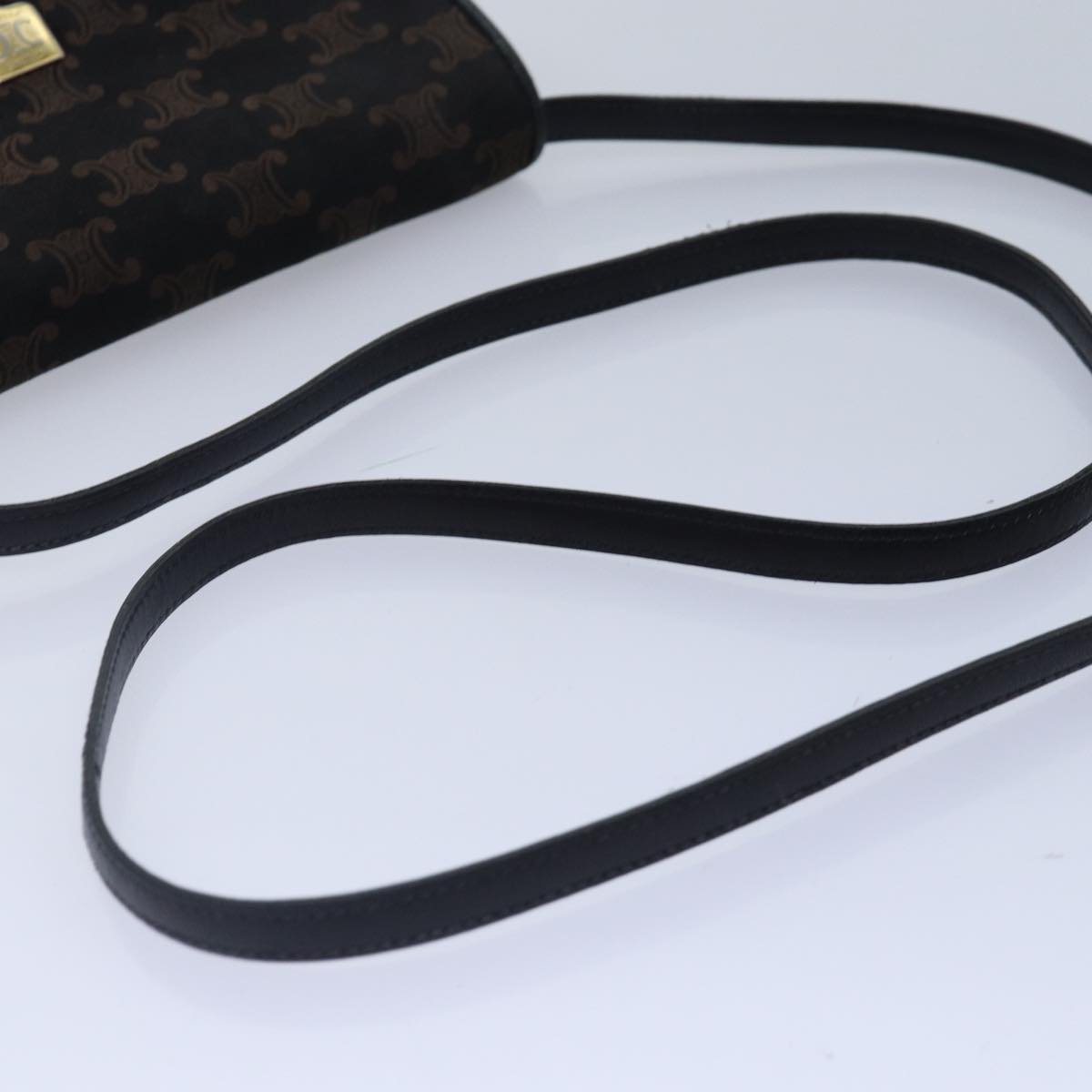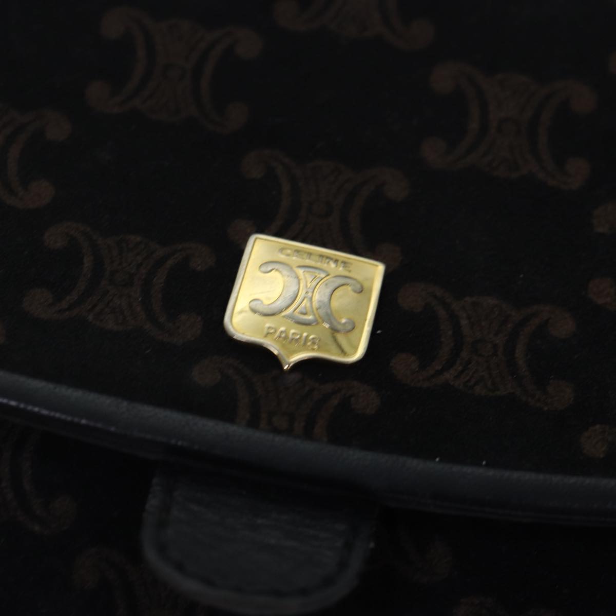 CELINE Macadam Canvas Shoulder Bag Gold Black Auth 86637