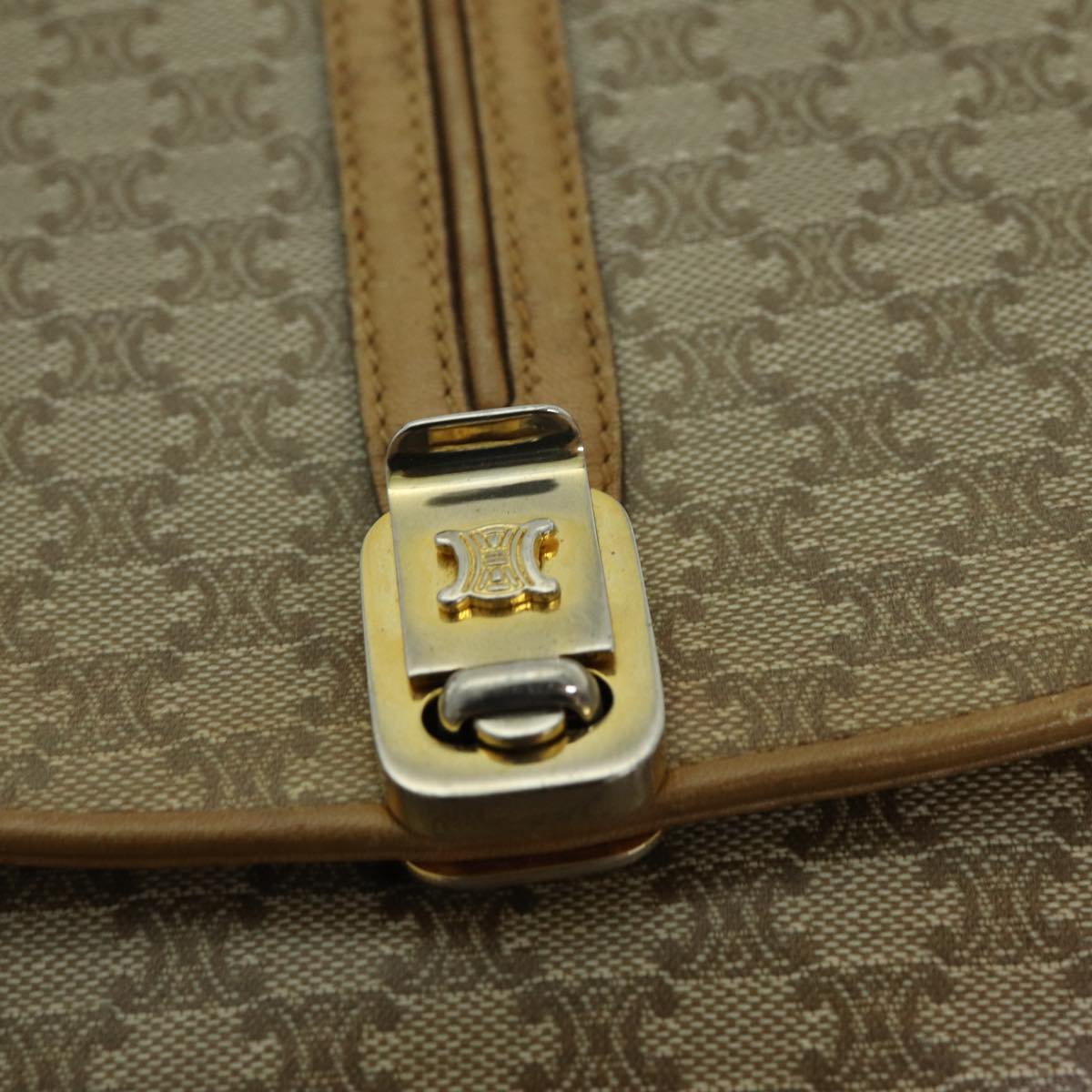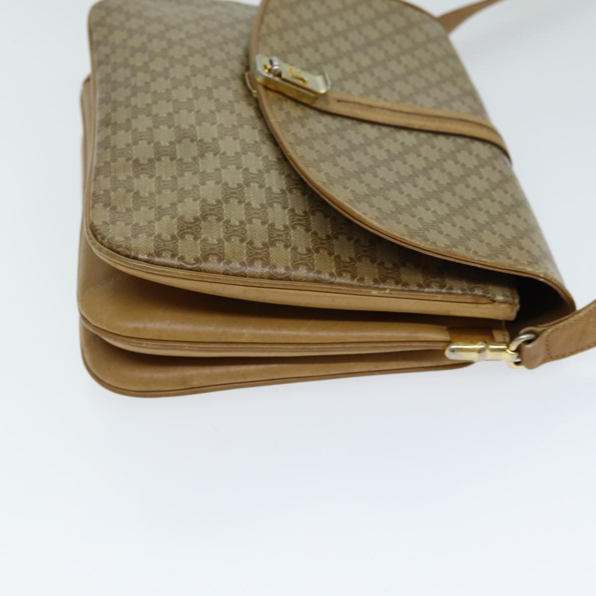 CELINE Macadam Canvas Shoulder Bag PVC Leather Beige Auth 80814