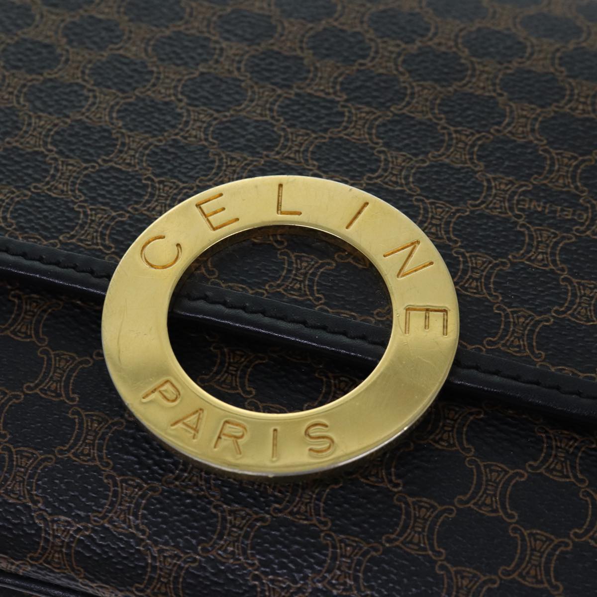 CELINE Macadam Canvas Shoulder Bag PVC Leather Black Auth 84935