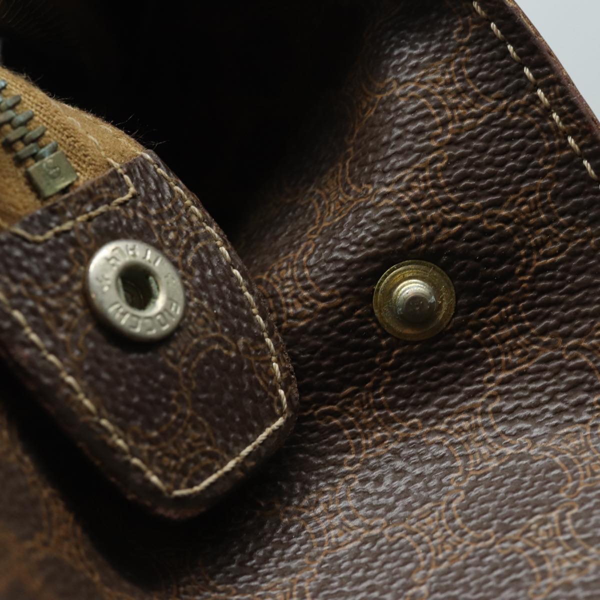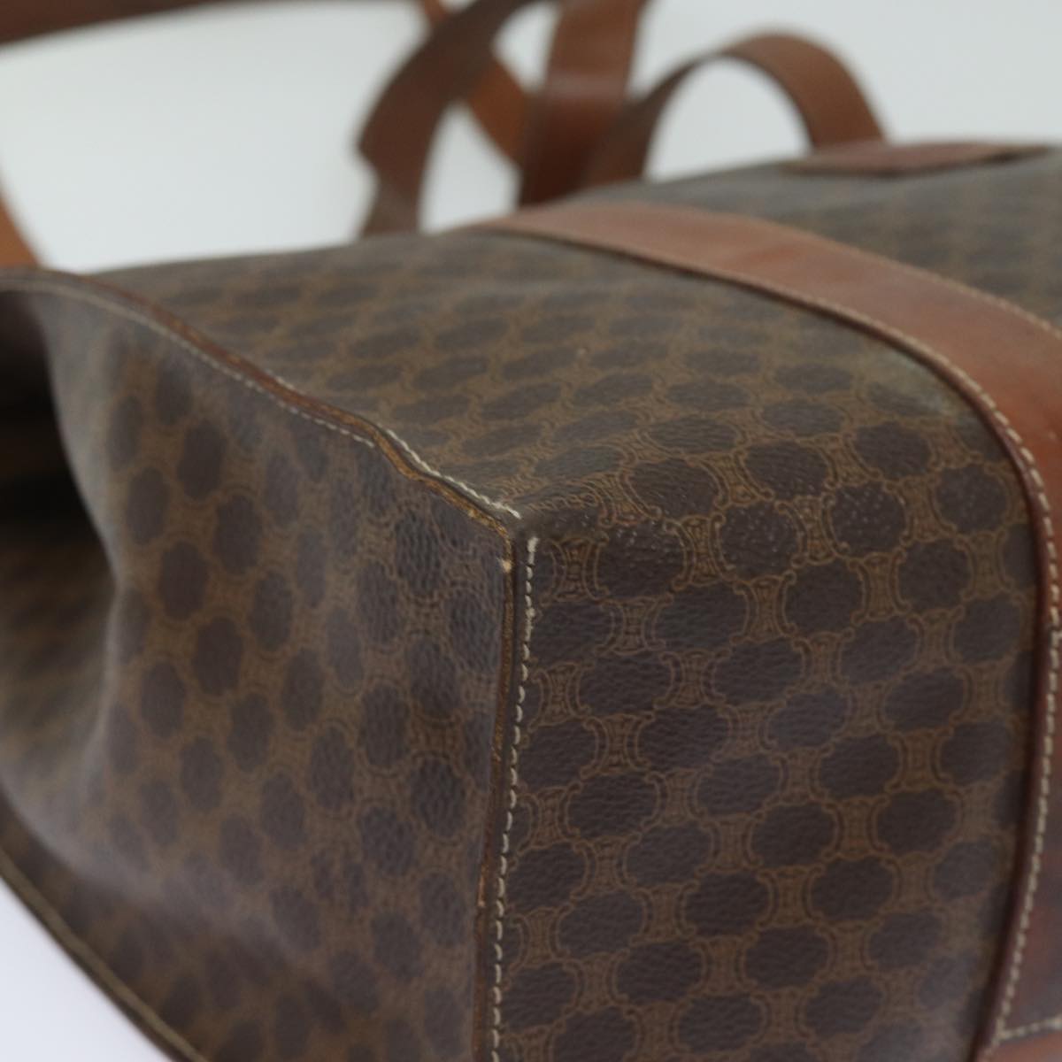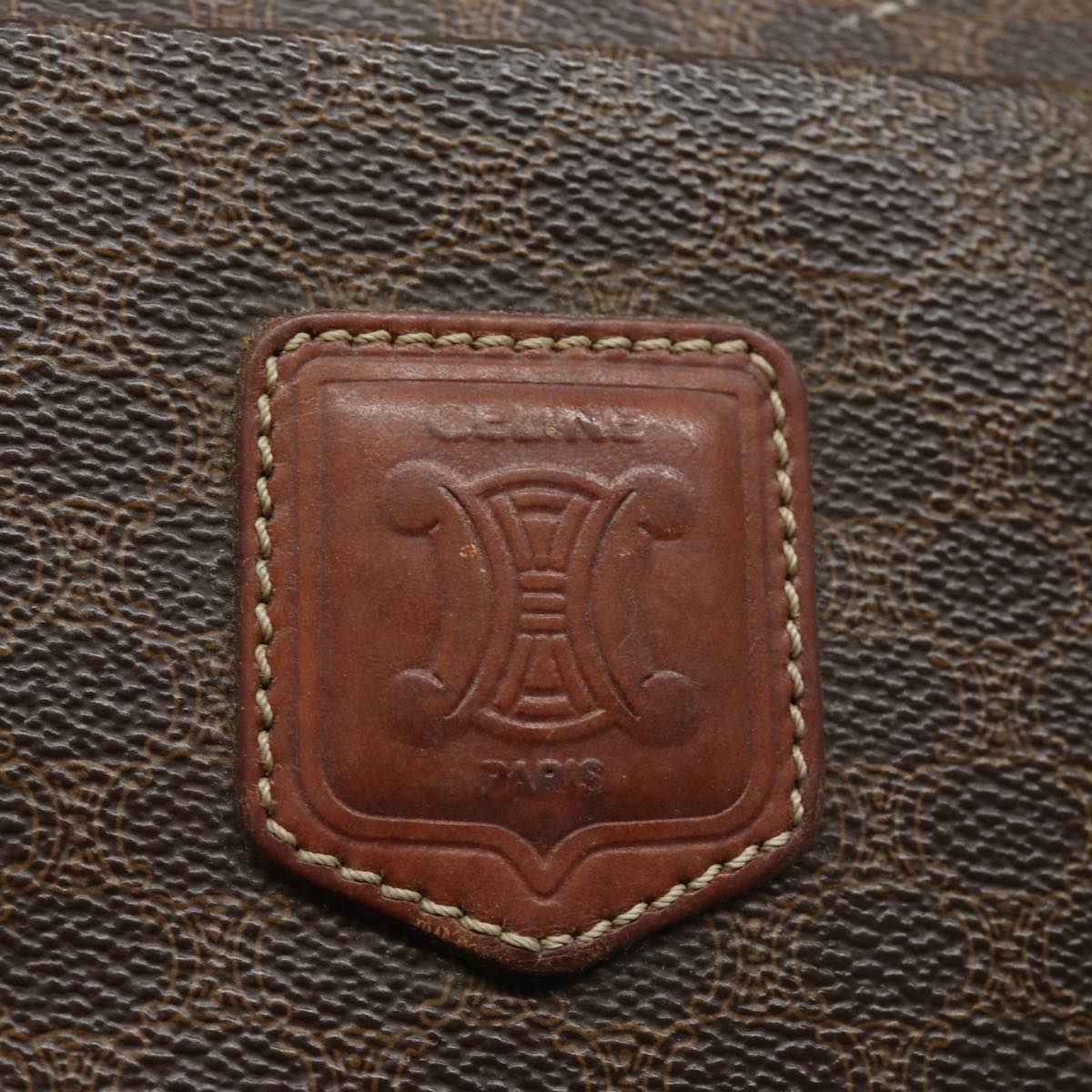 CELINE Macadam Canvas Shoulder Bag PVC Leather Brown Auth 81936