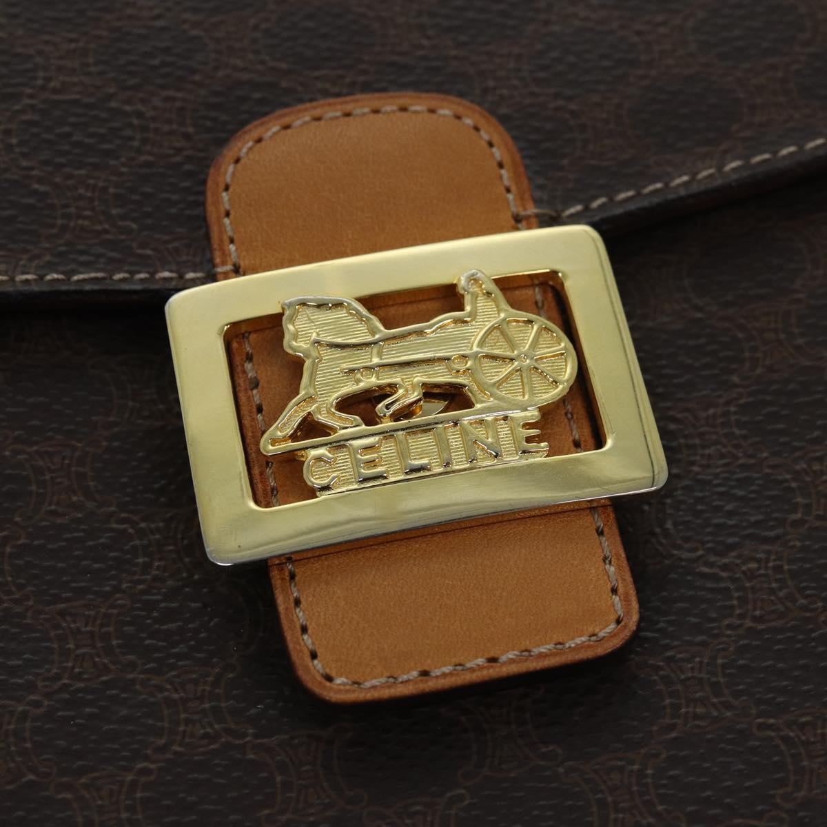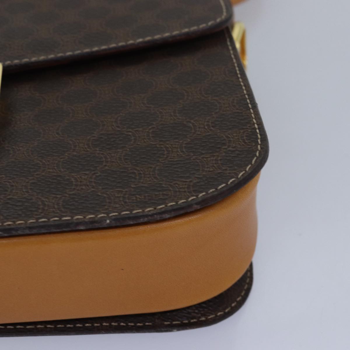 CELINE Macadam Canvas Shoulder Bag PVC Leather Brown Auth 83573