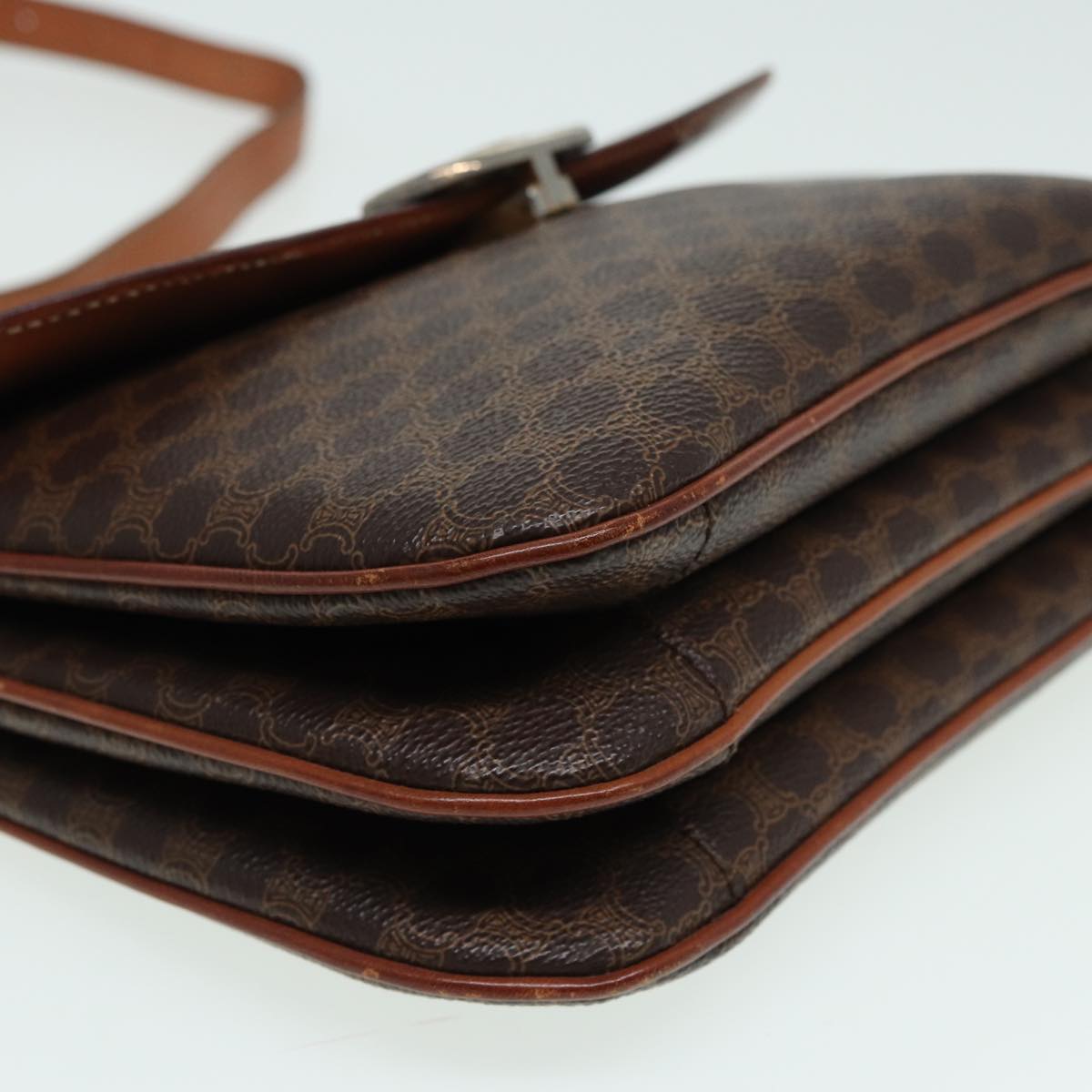 Celine Macadam Canvas Shoulder Bag PVC Leather Brown Auth 84209
