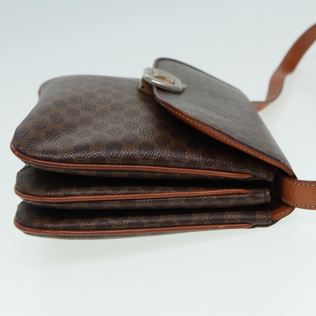 CELINE Macadam Canvas Shoulder Bag PVC Leather Brown Auth 84209