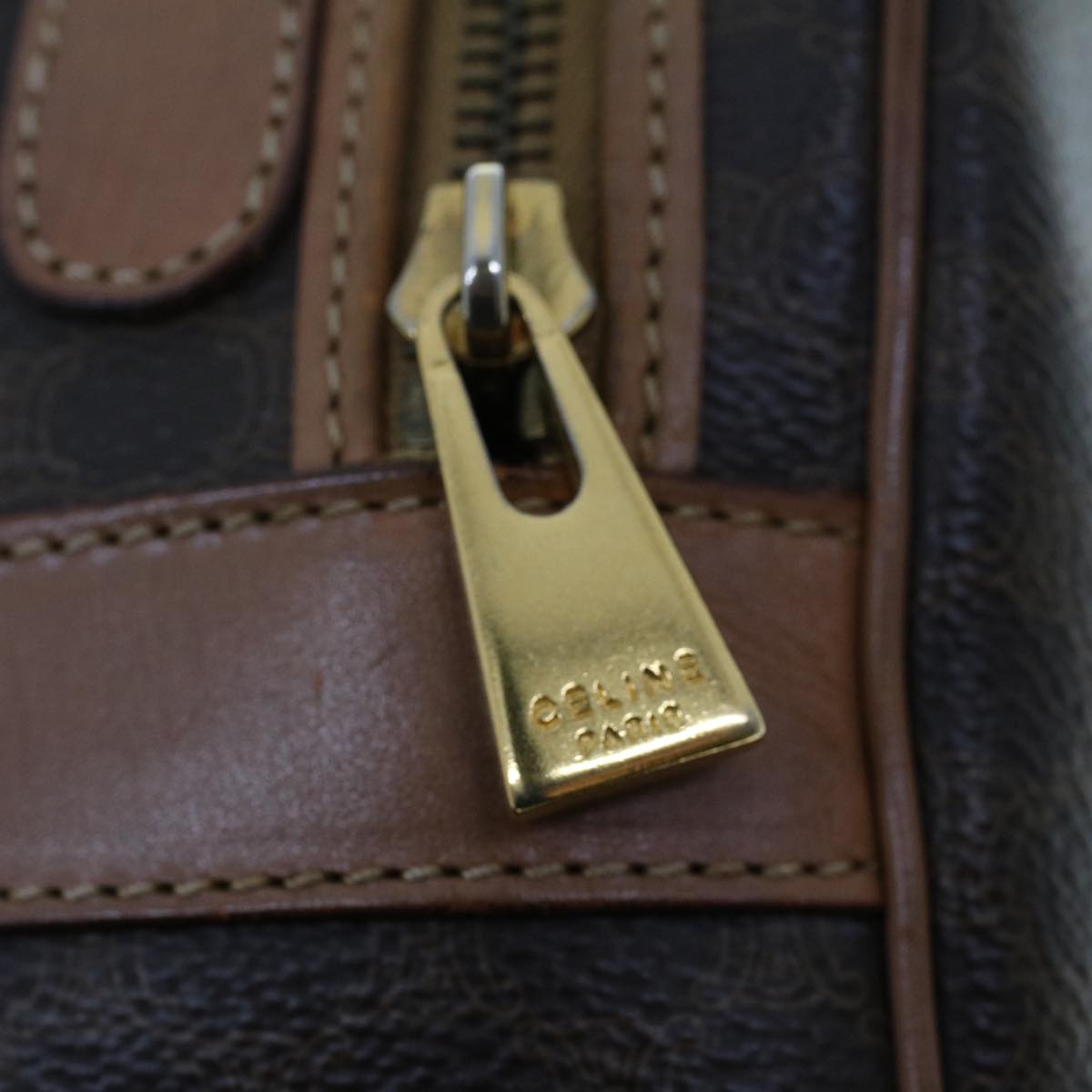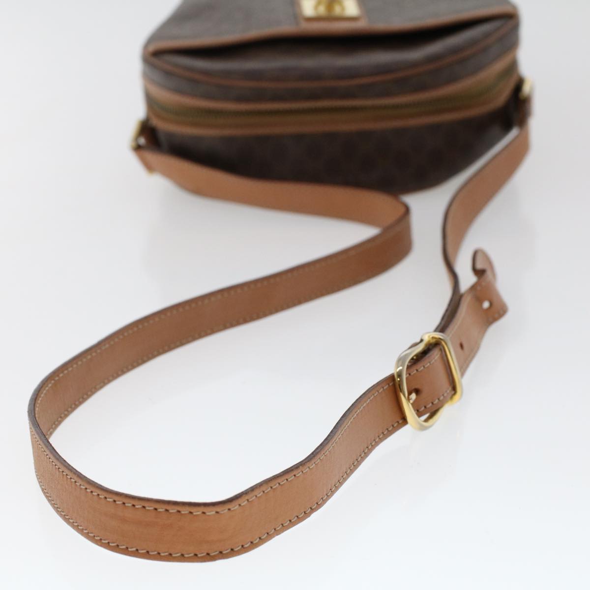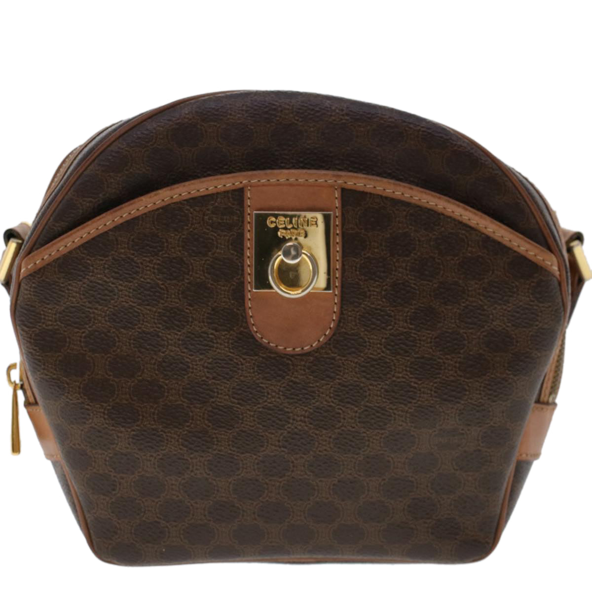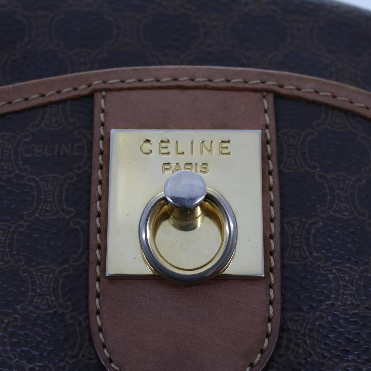 Celine Macadam Canvas Shoulder Bag PVC Leather Brown ar9832