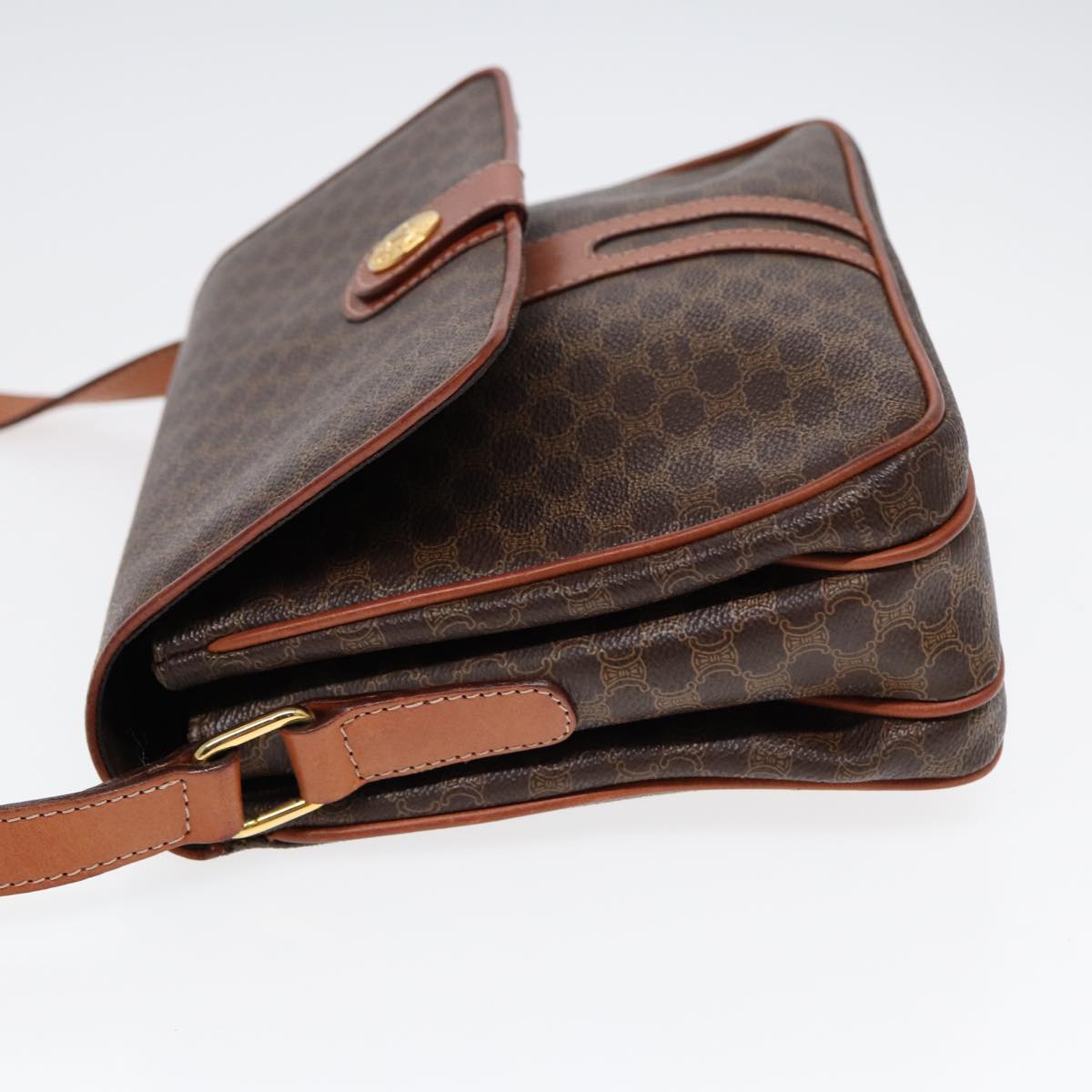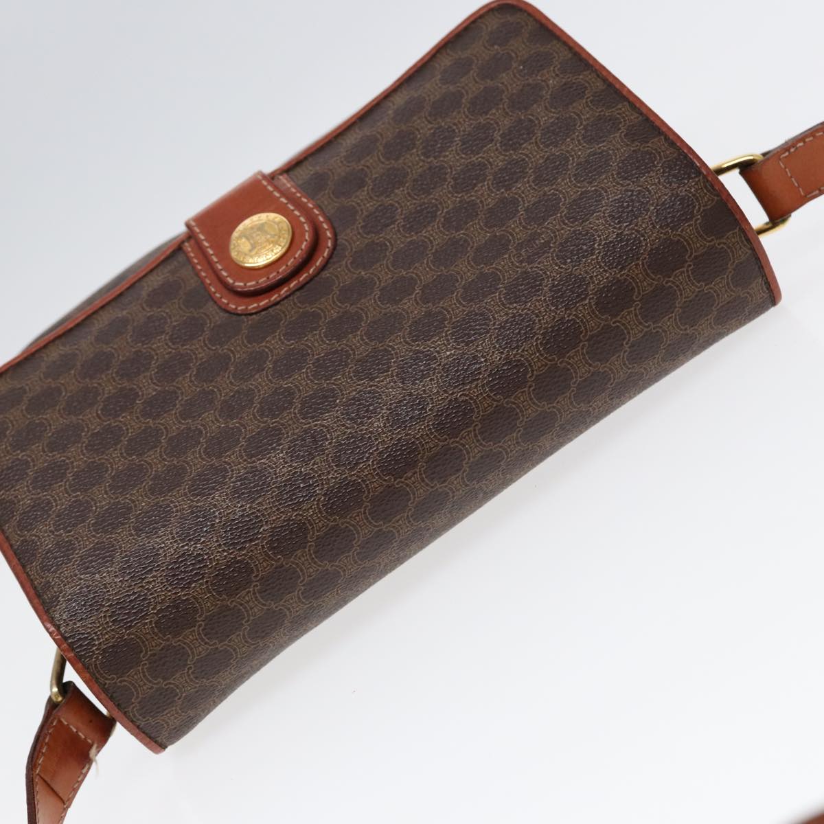 CELINE Macadam Canvas Shoulder Bag PVC Leather Brown Gold Auth 86836