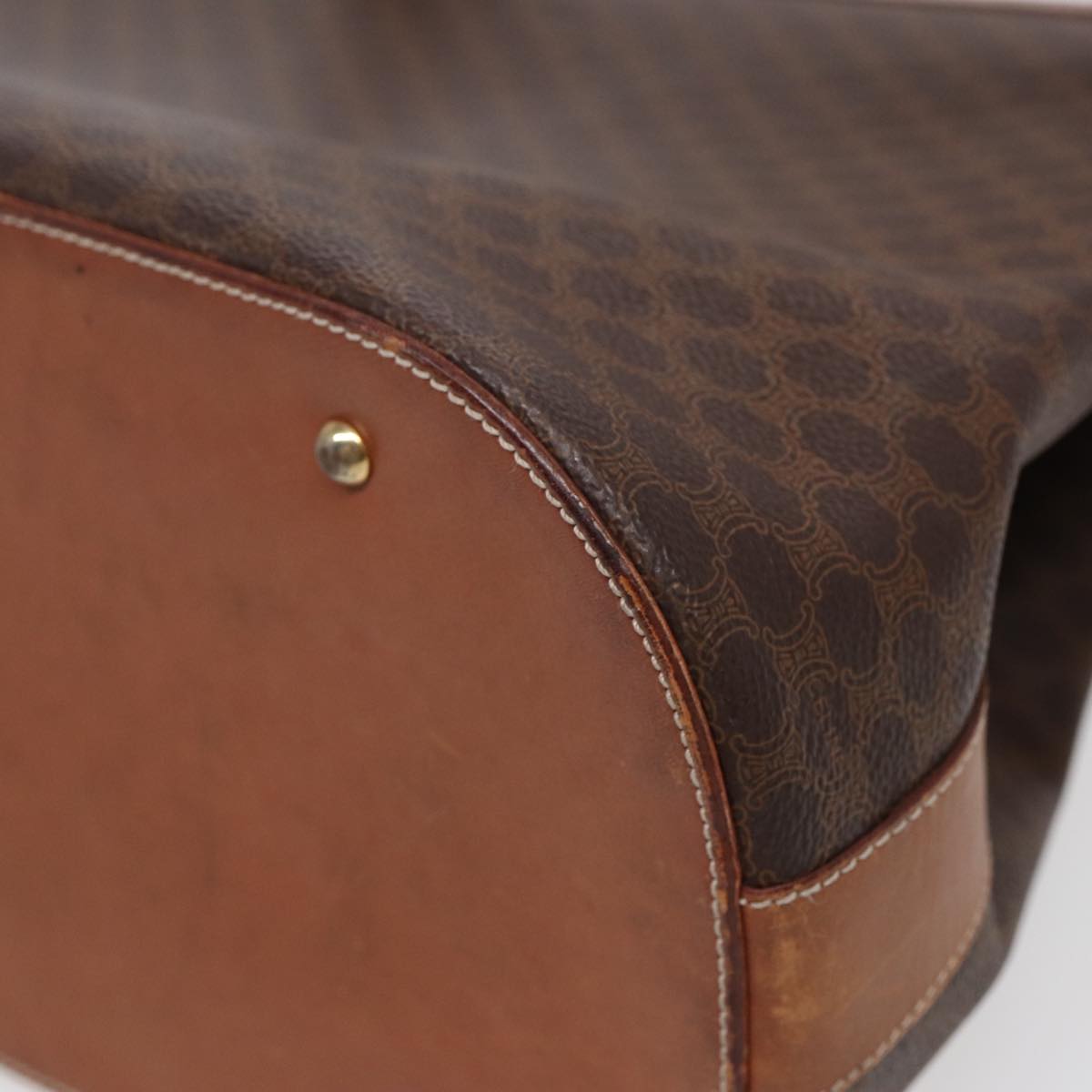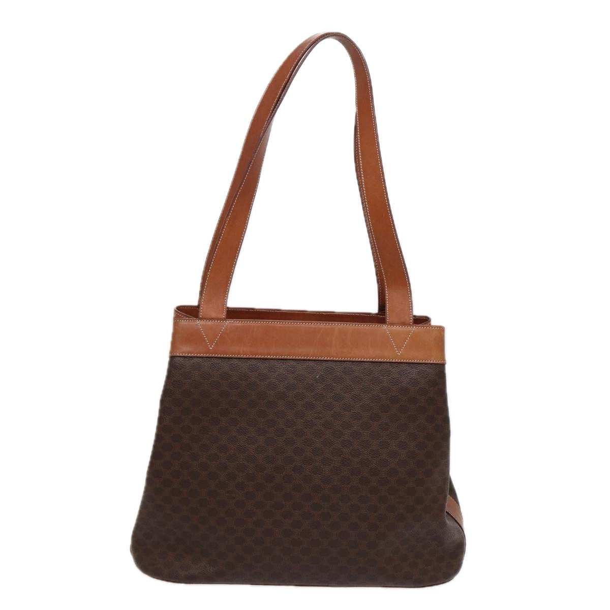 Celine Macadam Canvas Shoulder Bag PVC Leather Brown Gold Auth 88714