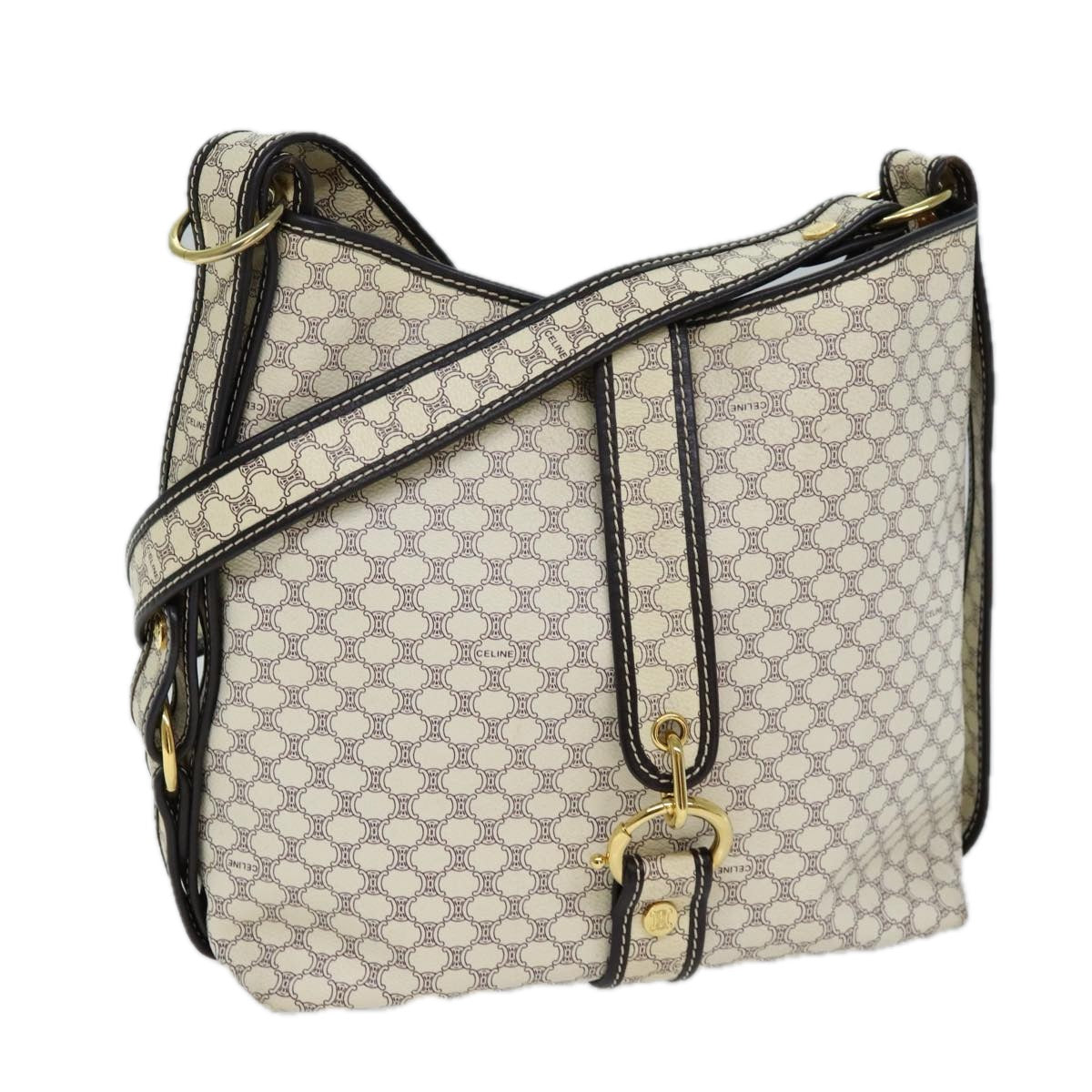 CELINE Macadam Canvas Shoulder Bag PVC White Auth 72176