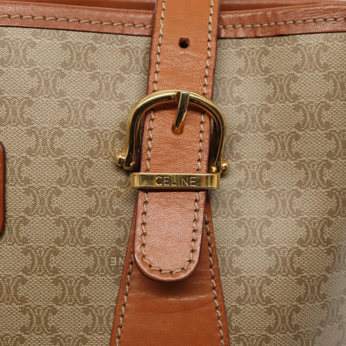 CELINE Macadam Canvas Tote Bag Beige Gold Auth 88763