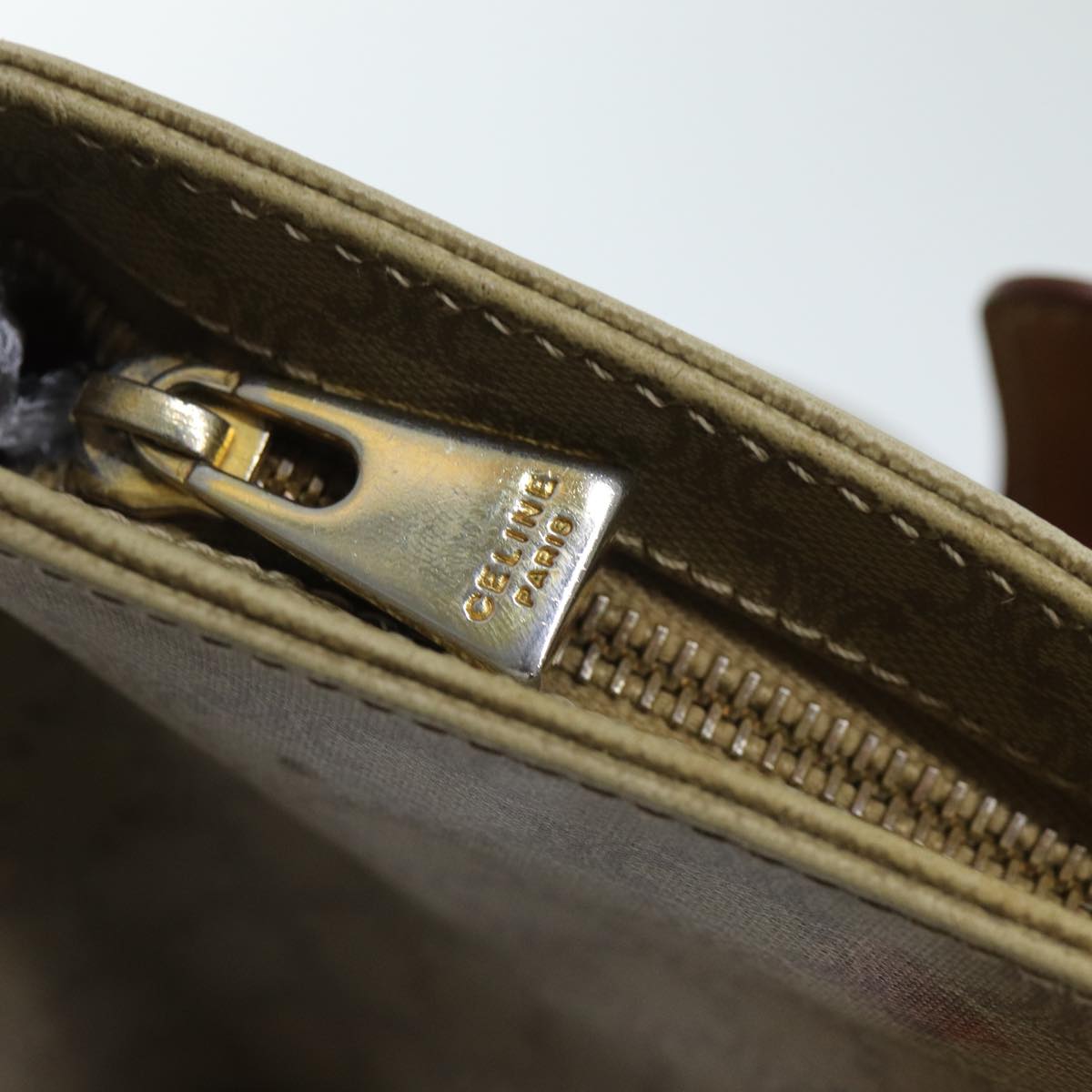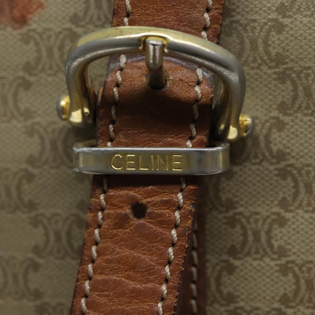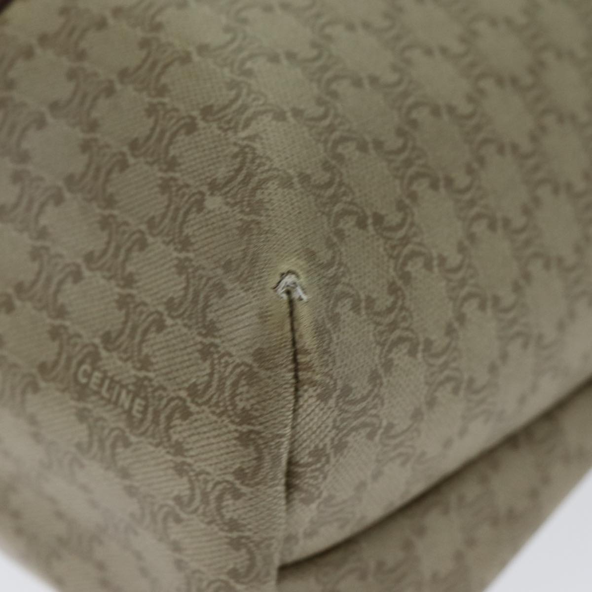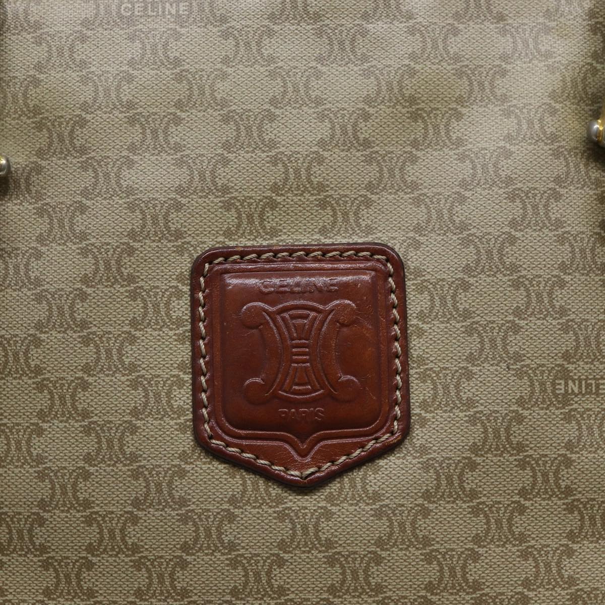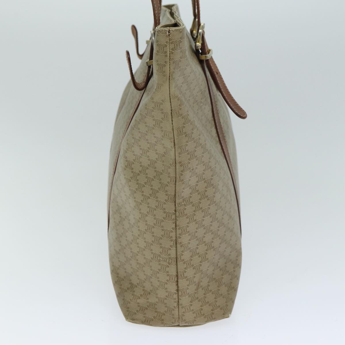 CELINE Macadam Canvas Tote Bag Leather Beige Auth bs15312