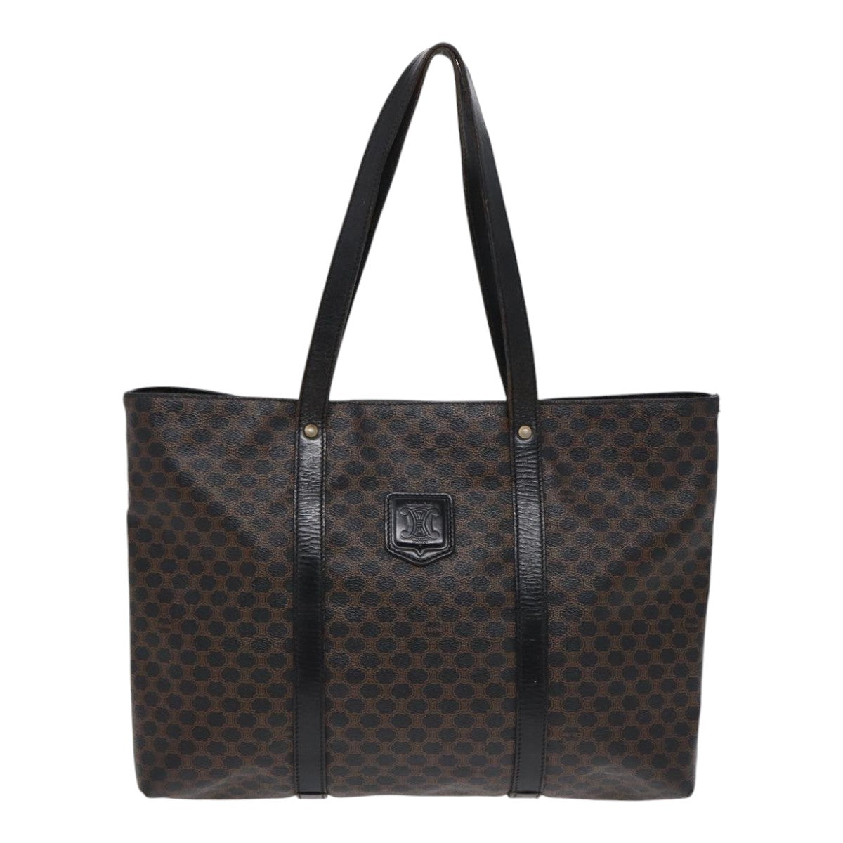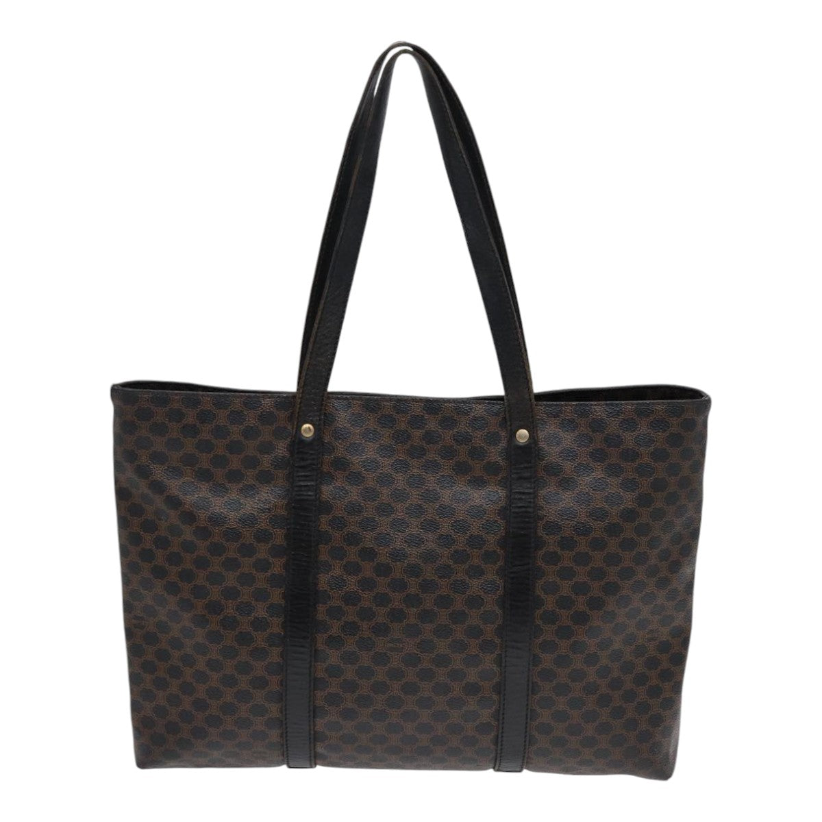 CELINE Macadam Canvas Tote Bag PVC Black Gold Auth 85704