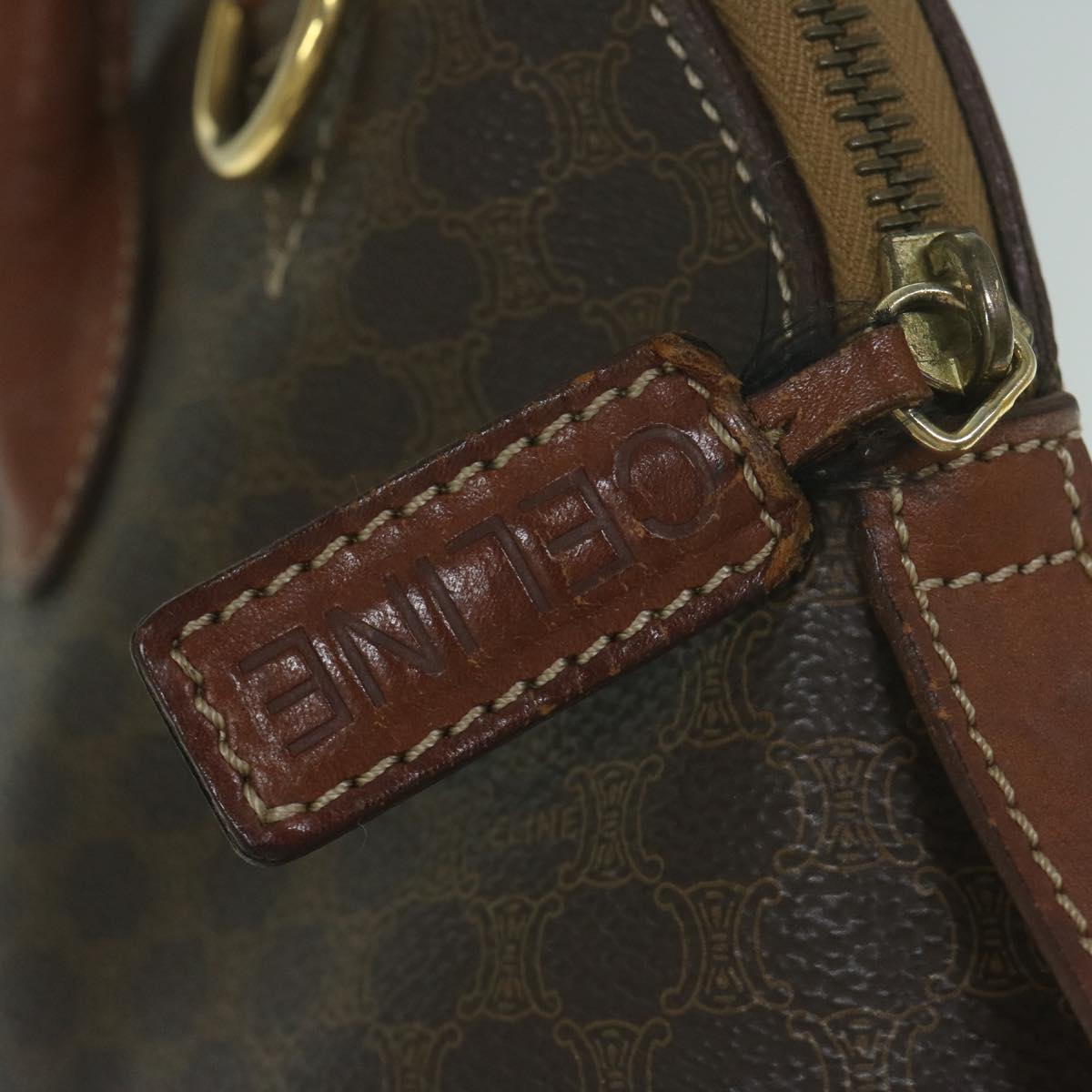 Celine Macadam Canvas Tote Bag PVC Leather 2way Brown tb1019