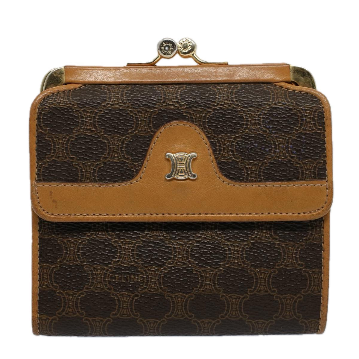 CELINE Macadam Canvas Wallet PVC Leather Brown Auth ac2489