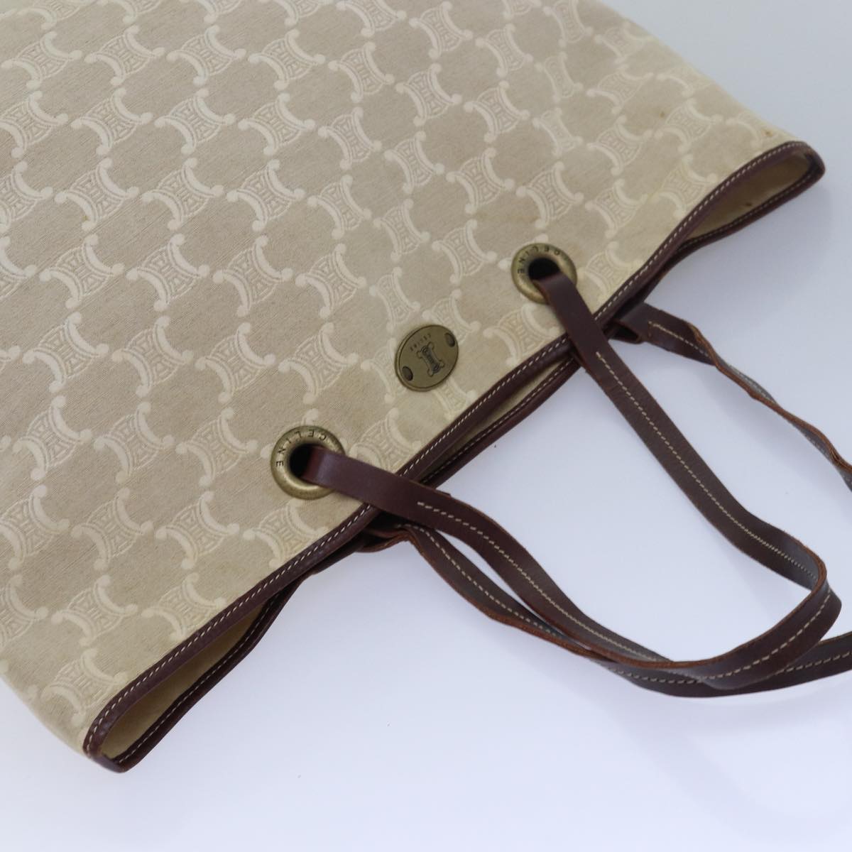 CELINE Paris Macadam Canvas Tote Bag Beige Brown Auth 83330