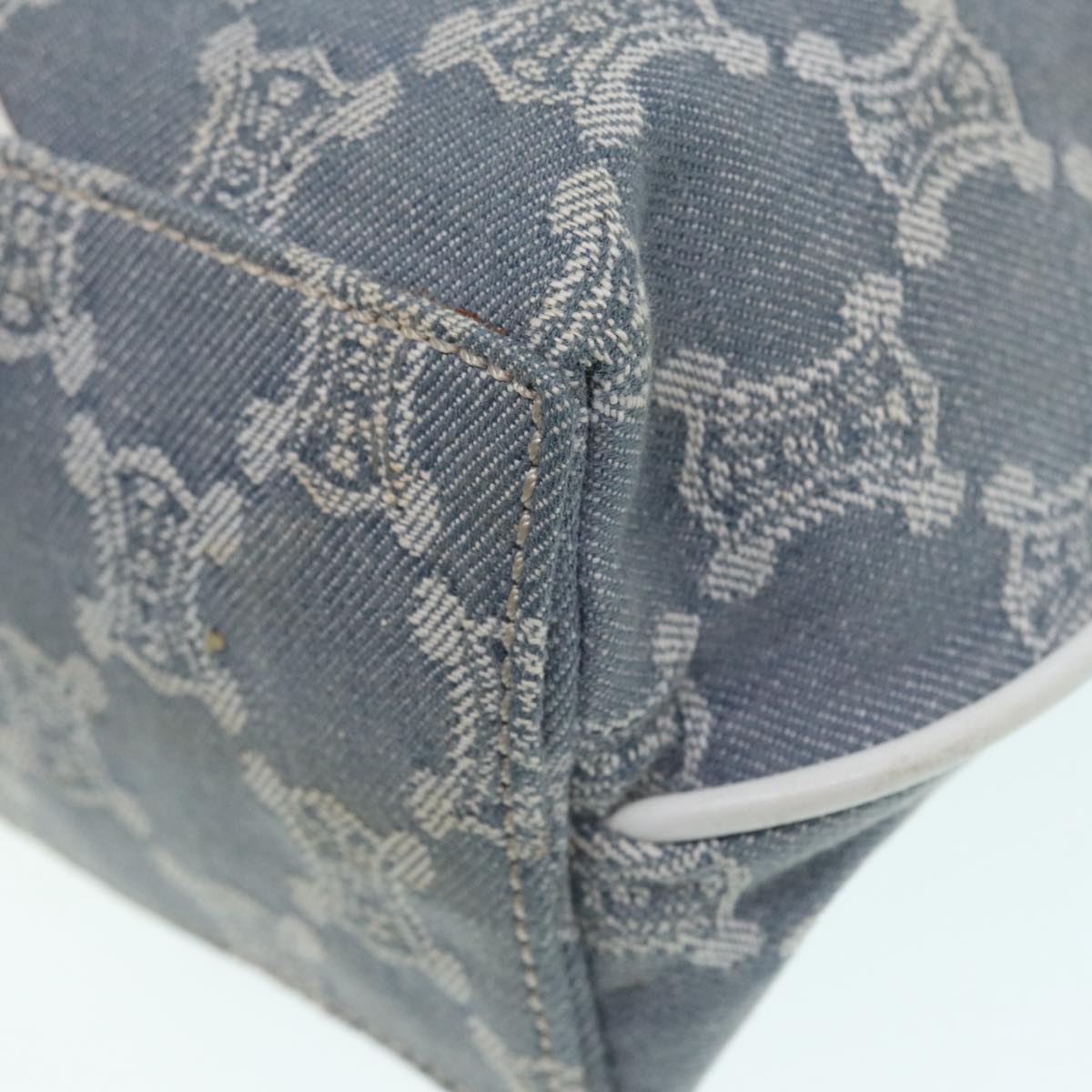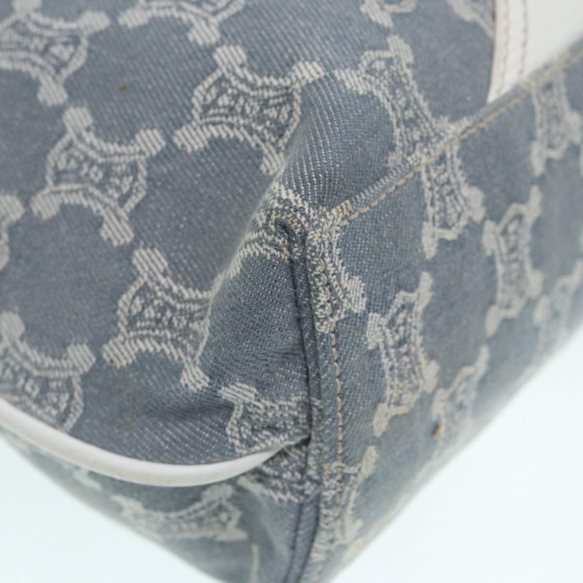 CELINE Paris Macadam Canvas Tote Bag Leather Blue White Silver Auth 87066