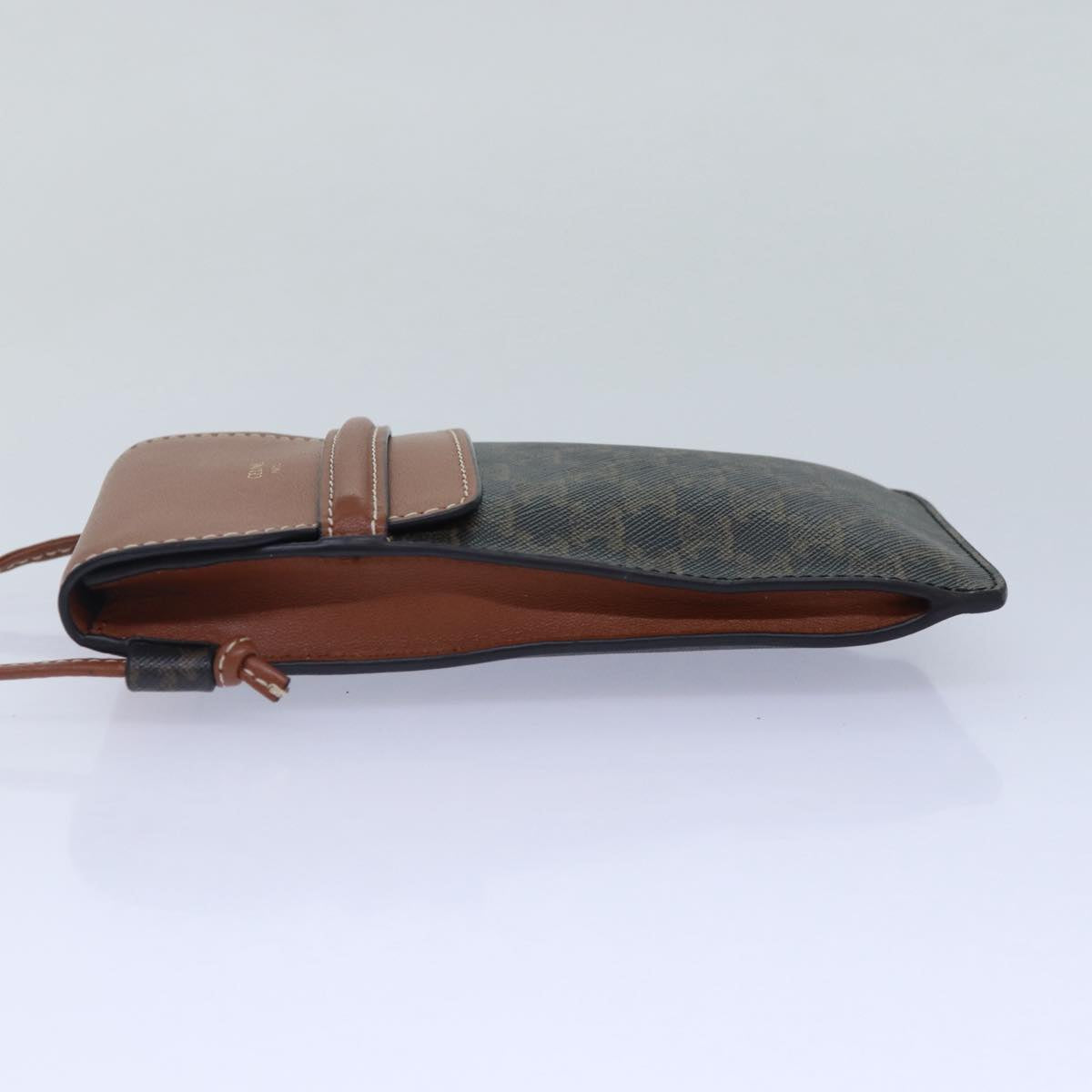 CELINE Phone case Macadam Canvas PVC Leather Black Brown Auth ar12461