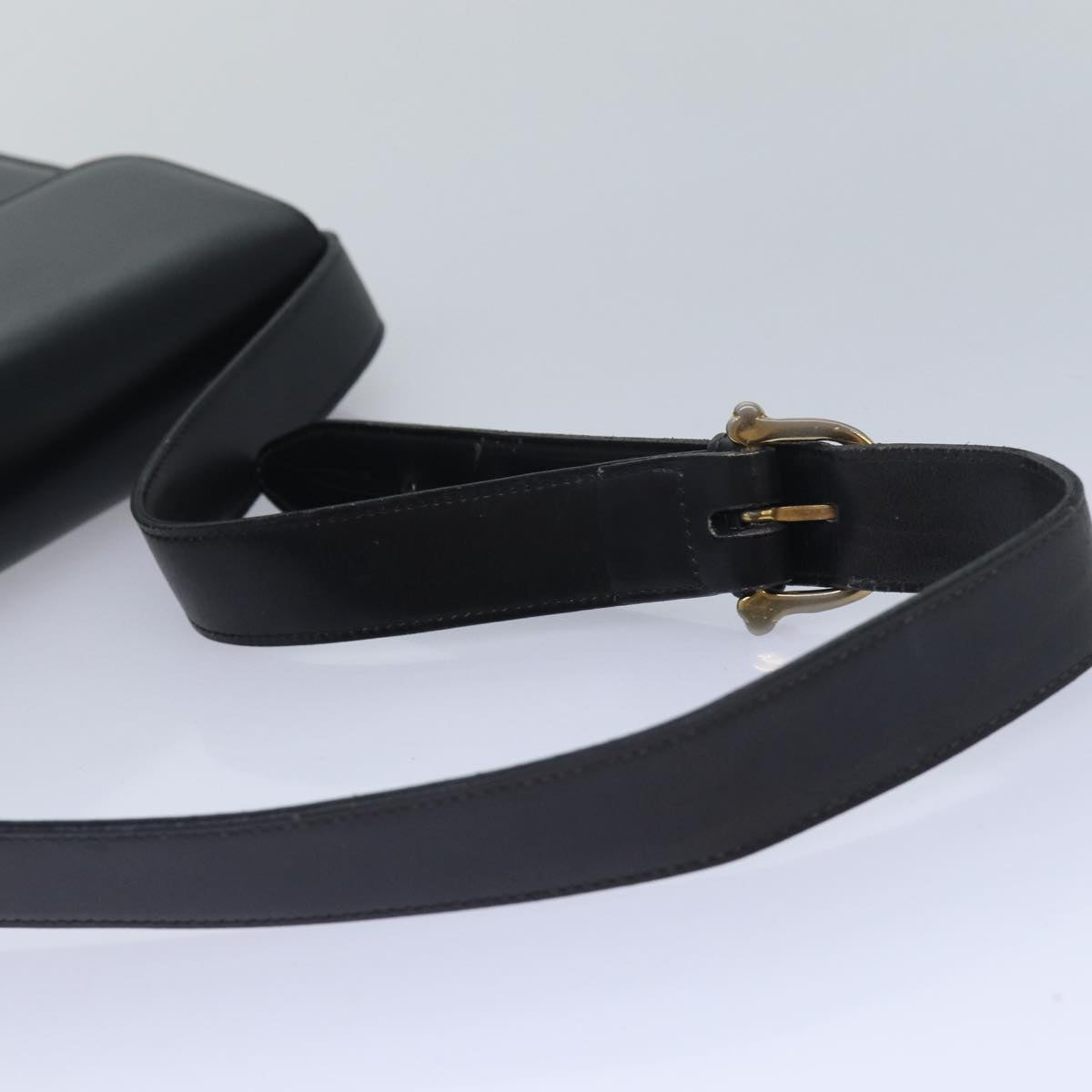 CELINE Shoulder Bag Leather Black Auth 83680