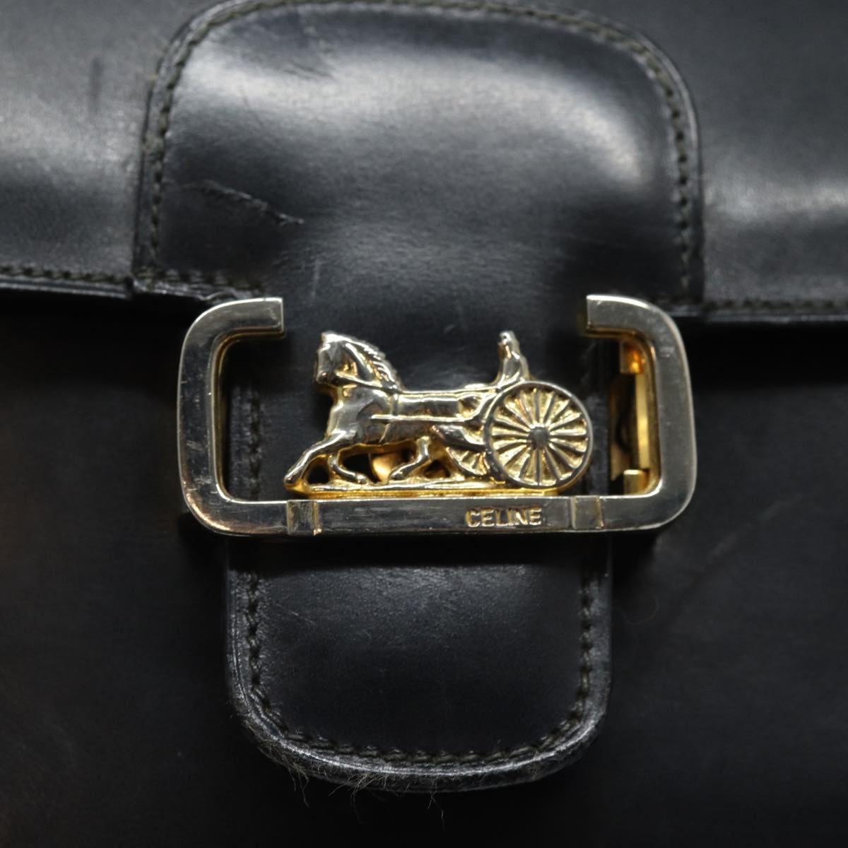 CELINE Shoulder Bag Leather Black Auth 84213