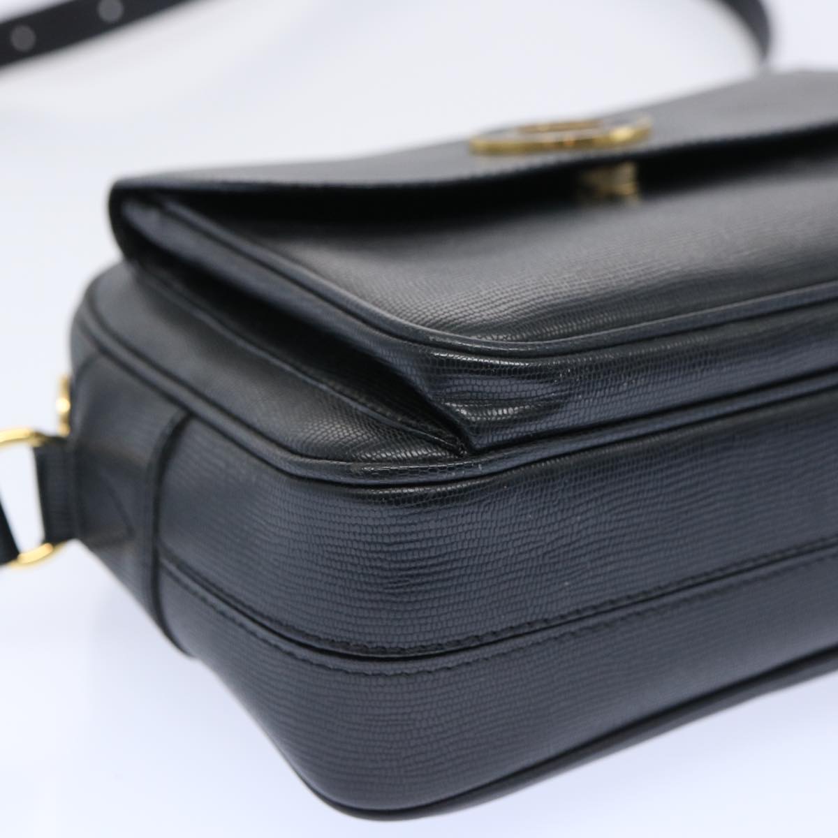 CELINE Shoulder Bag Leather Black Auth ep3112