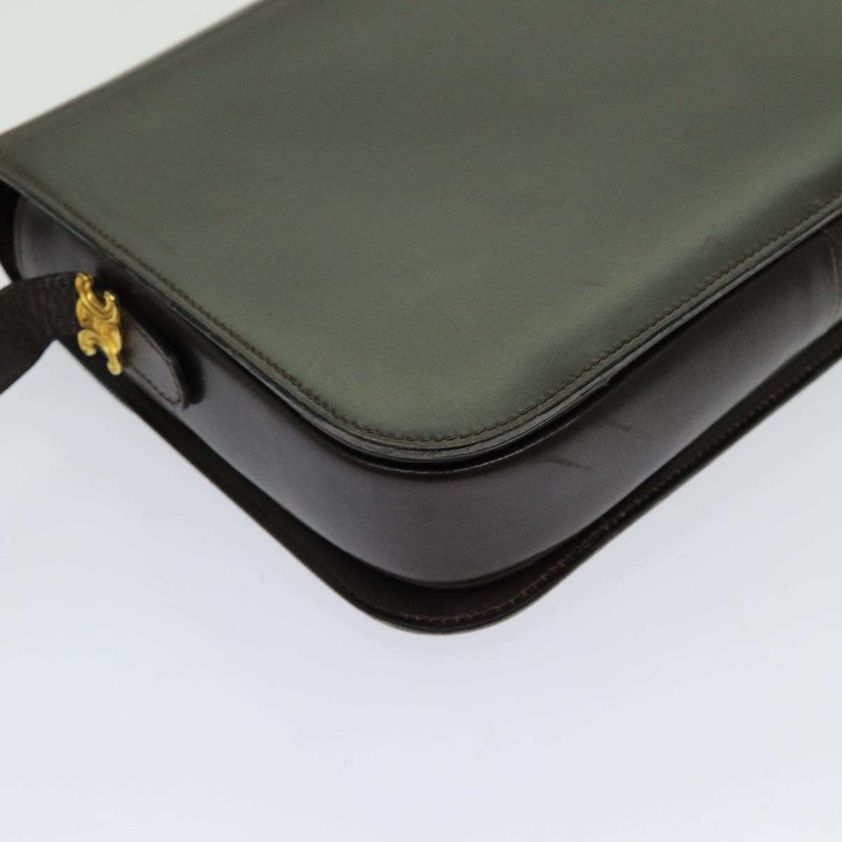 CELINE Shoulder Bag Leather Dark Brown Auth 70802