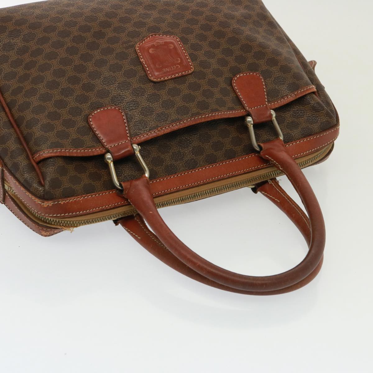 Celine Shoulder Macadam Canvas Hand Bag PVC 3Set Brown 12914