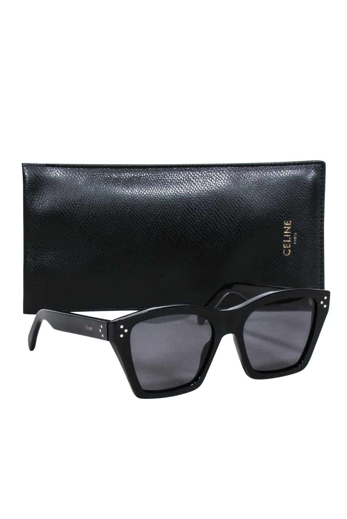 Unleash your inner feline with Celine's chic and sexy black square cat eye sunglasses. Whether you're lounging in the sun or hitting the town, stay stylish all year round with this large and versatile accessory!