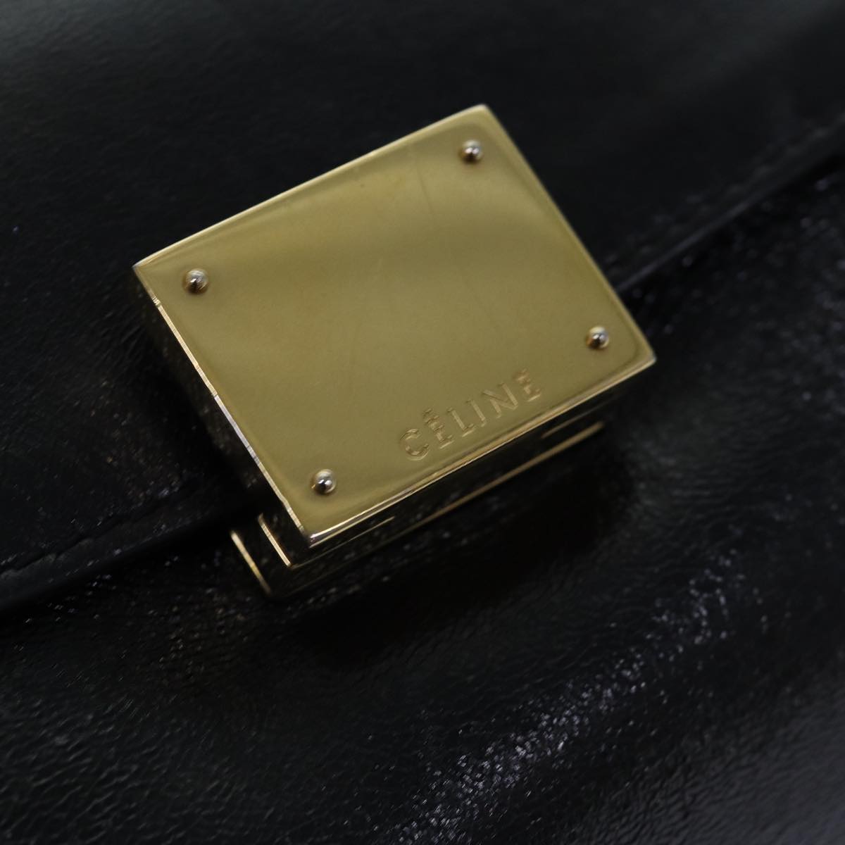 CELINE Trapeze Hand Bag Leather 2way Black Auth 76742