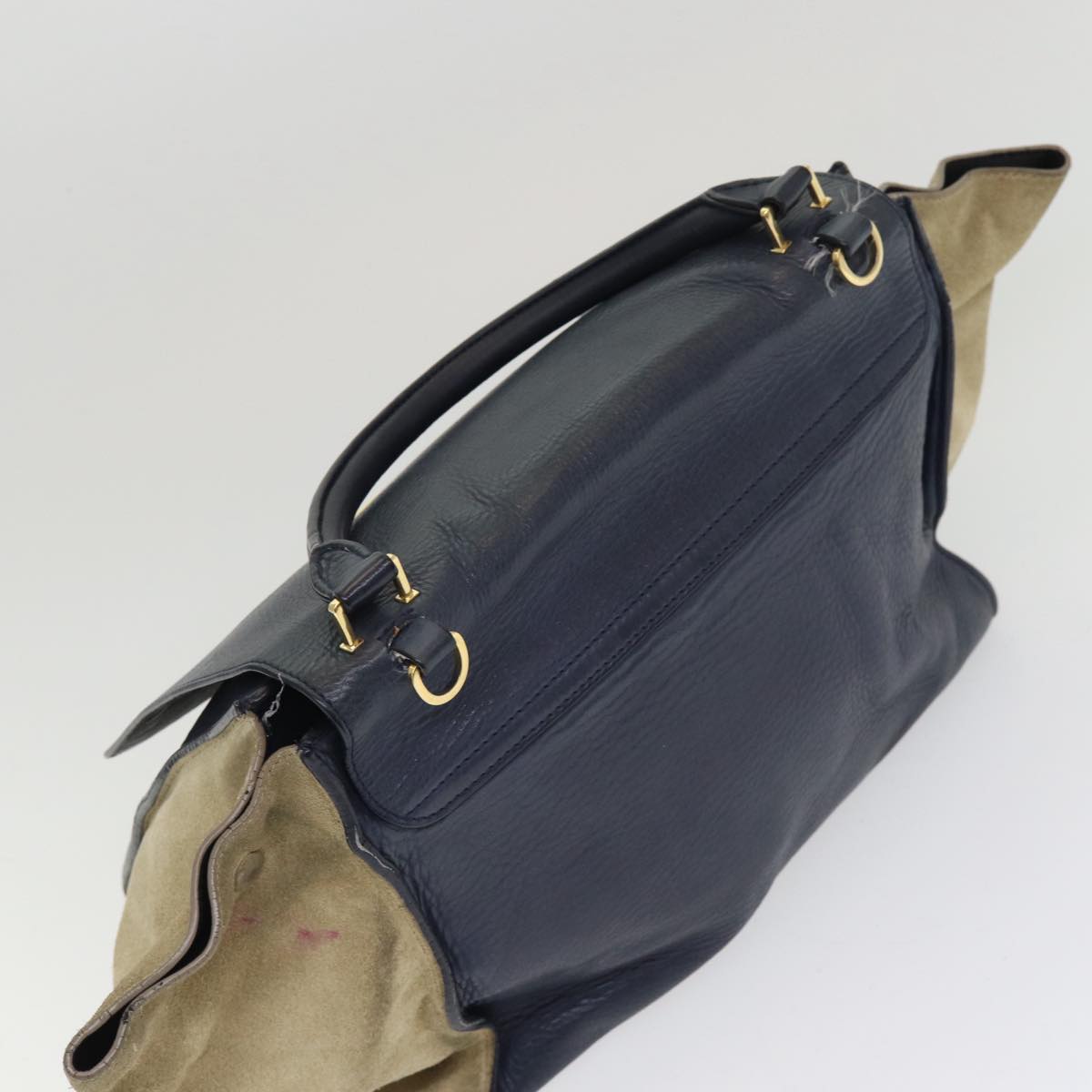 CELINE Trapeze Hand Bag Leather Suede Navy Beige Auth 82897