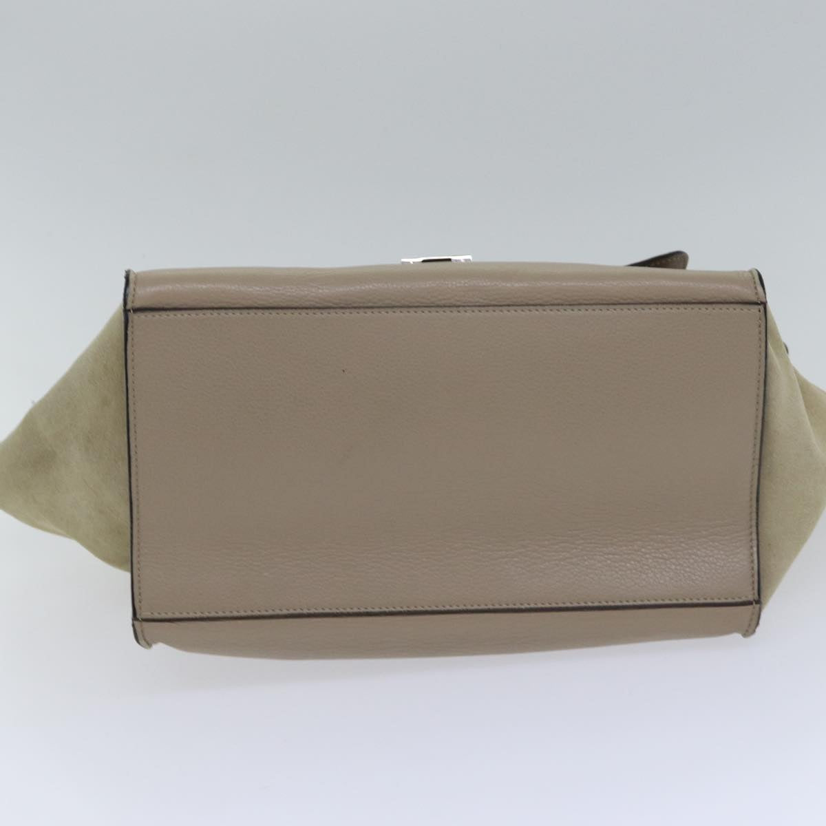 Celine Trapeze Hand Bag Suede Leather 2way Silver Beige Auth 89145