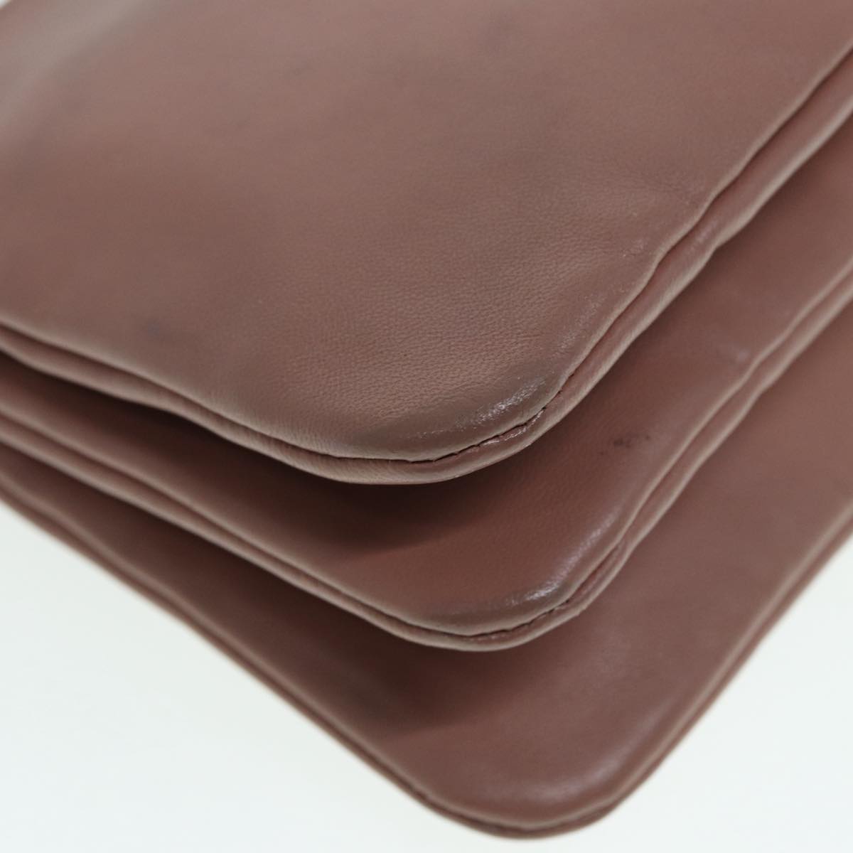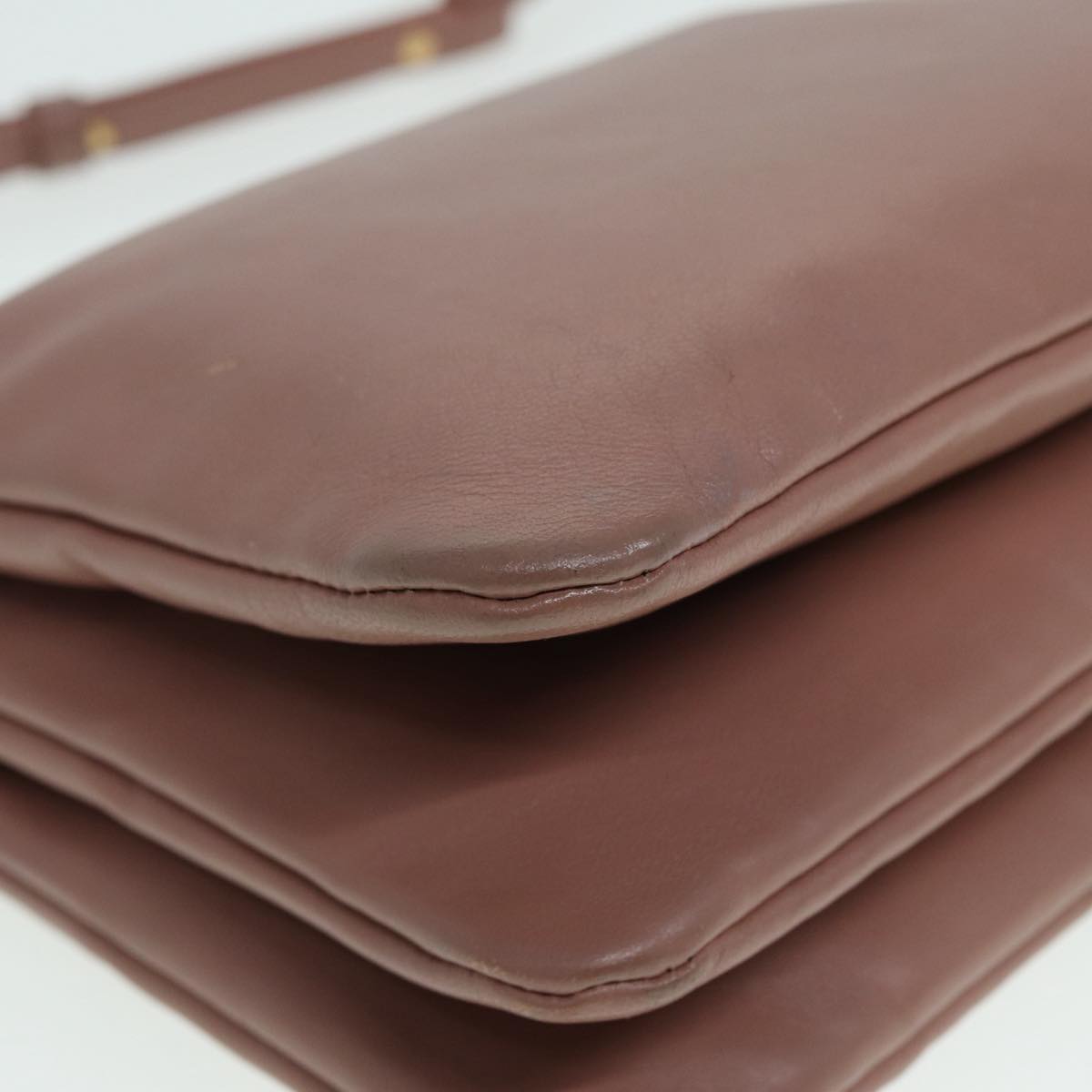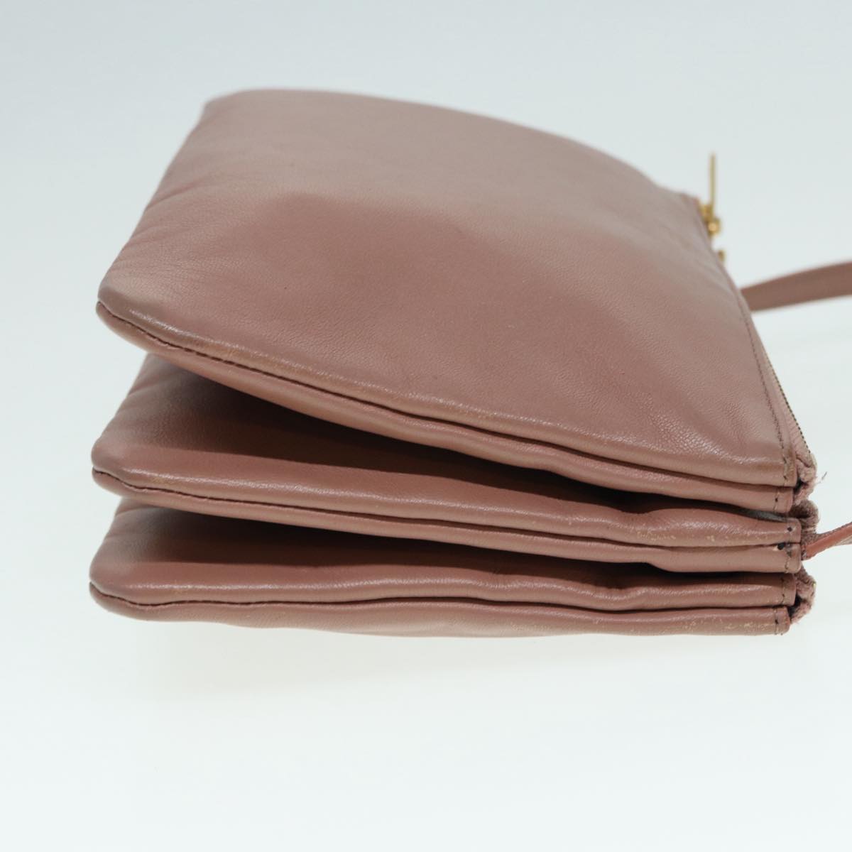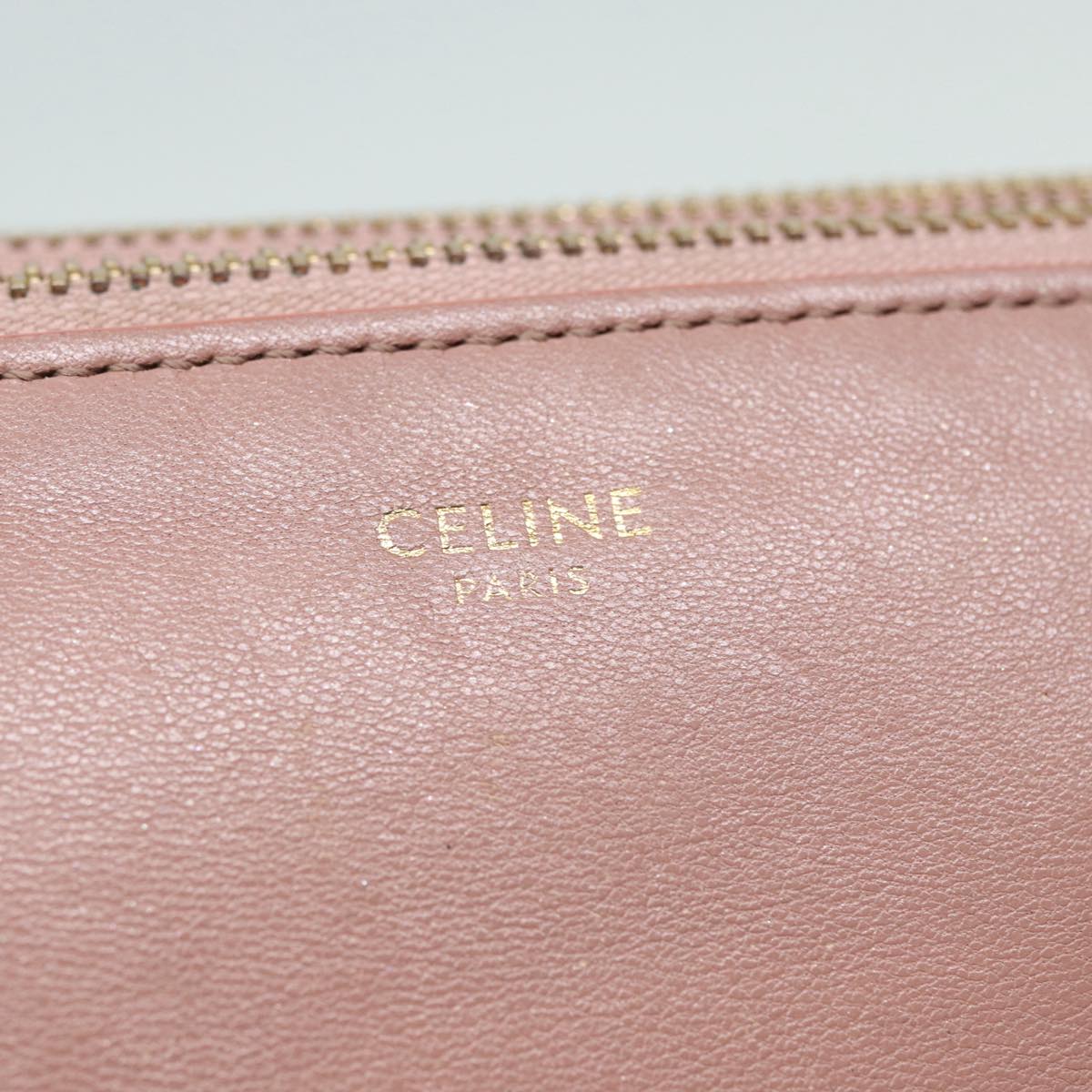 CELINE Trio Bag Shoulder Bag Leather Beige Gold Auth tb1117