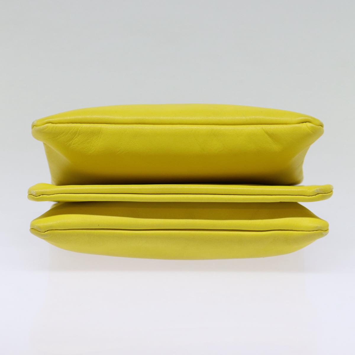 CELINE Trio Large Shoulder Bag Leather Yellow Gold Auth 88116