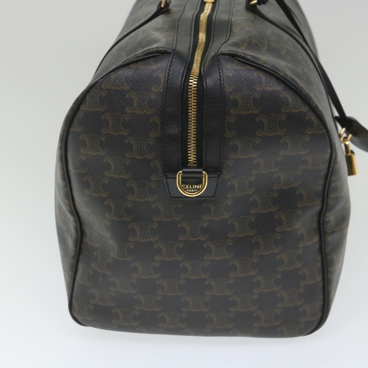 CELINE Triomphe Canvas Boston Bag PVC Leather 2way Black Auth hk880