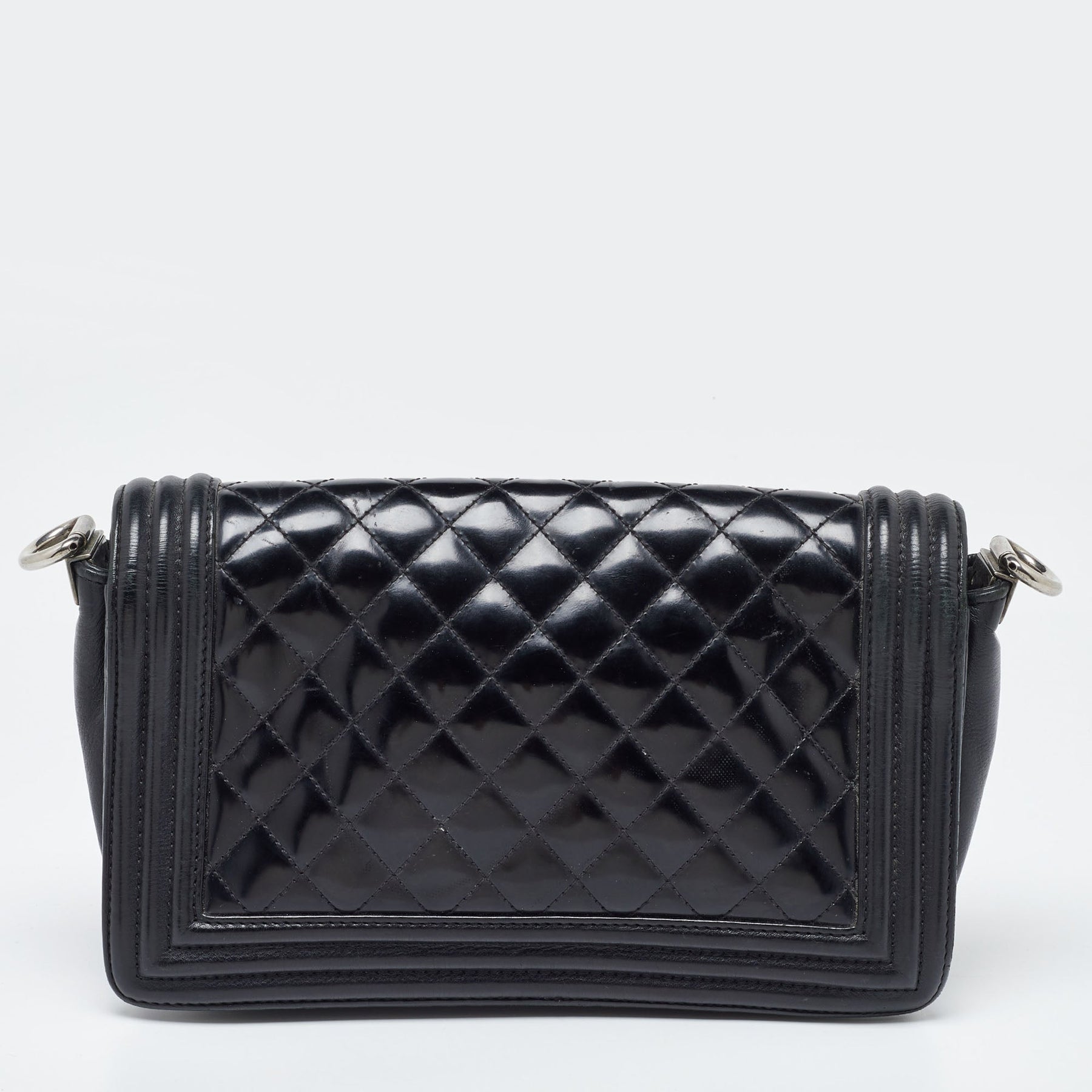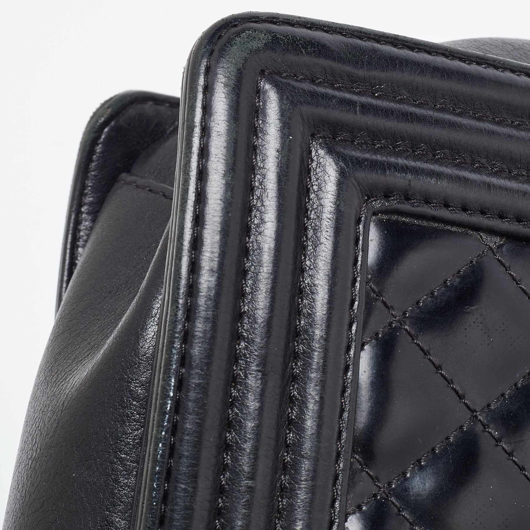 CHANEL Black Quilted Patent Leather Medium Boy Bag