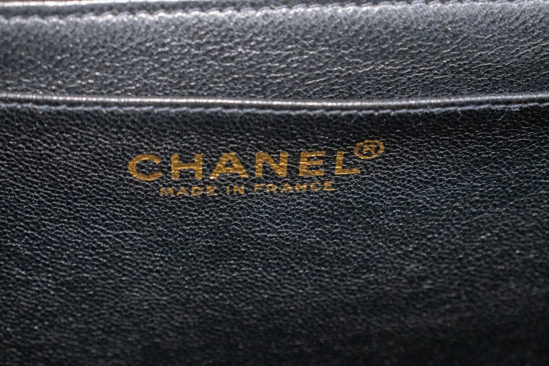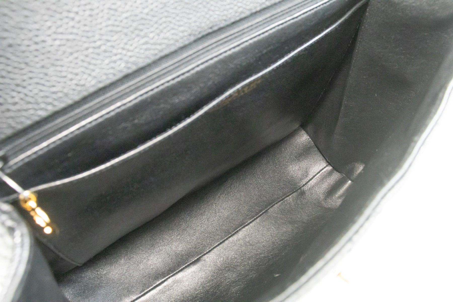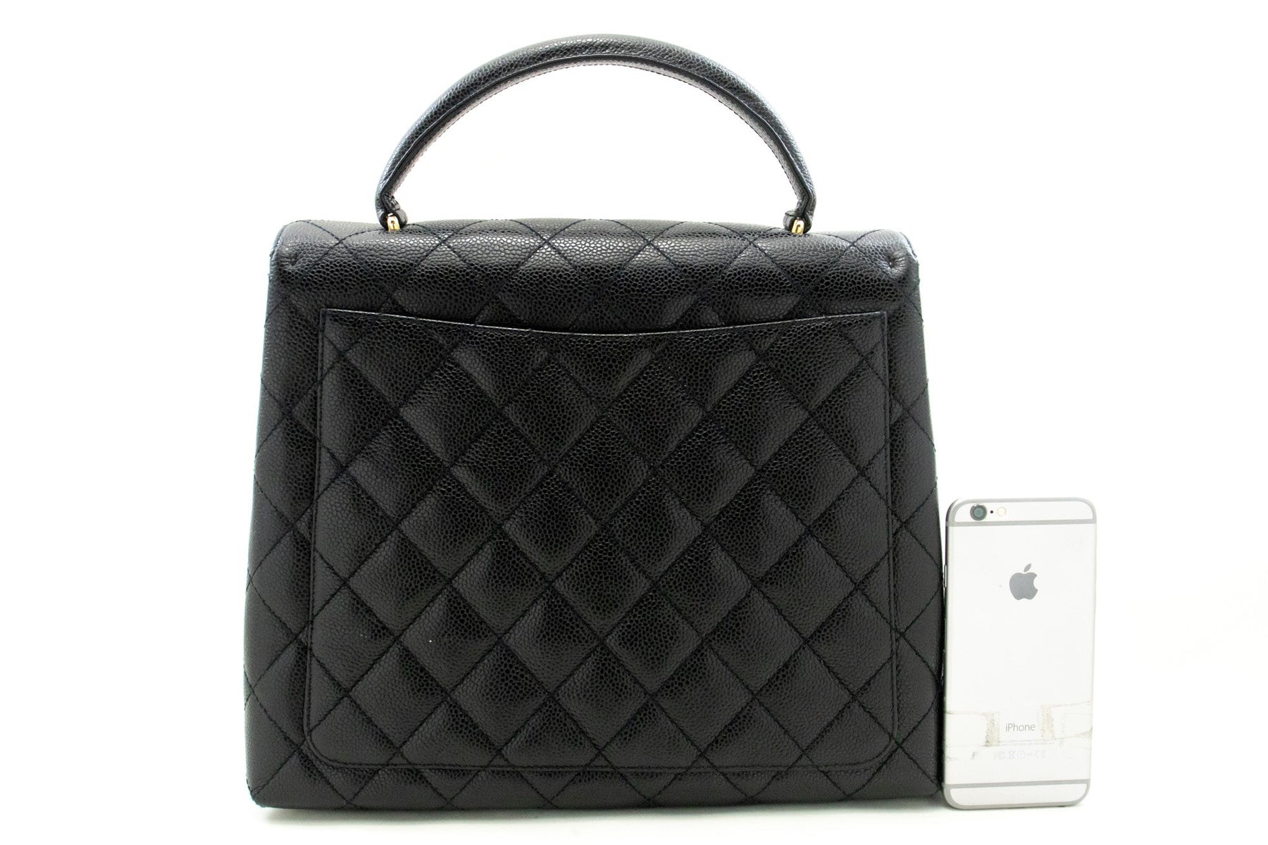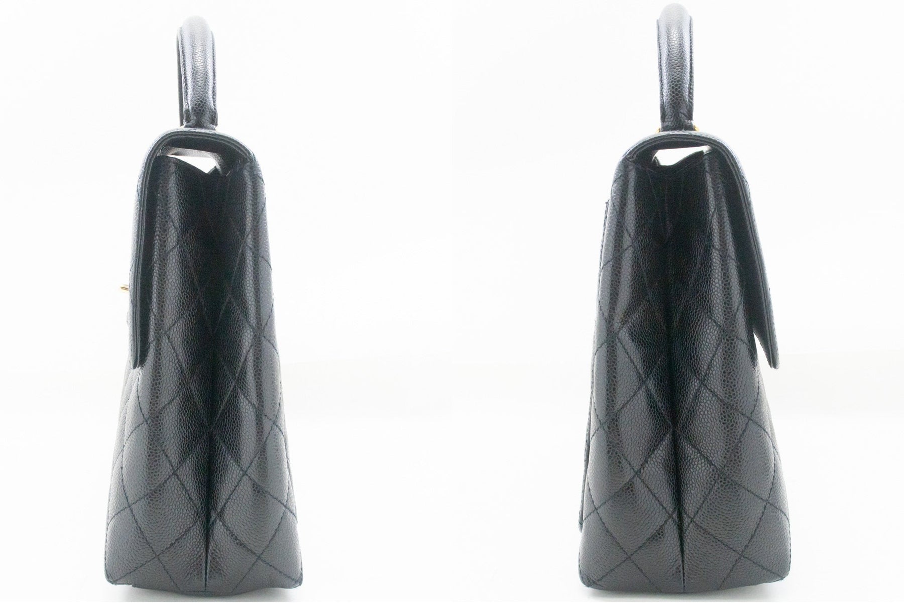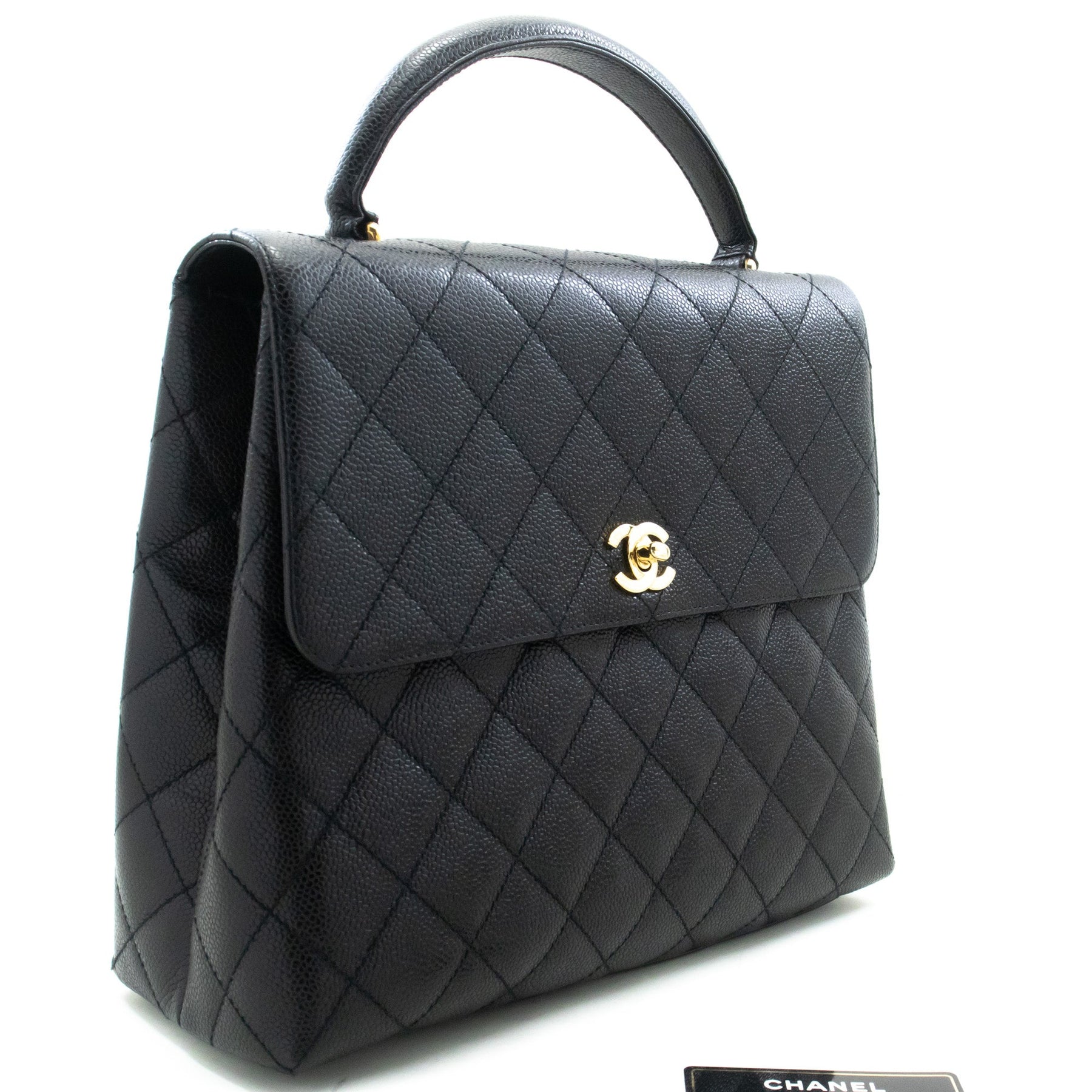 An CHANEL Caviar Handbag Top Handle Bag Kelly Black New Leather Gold.