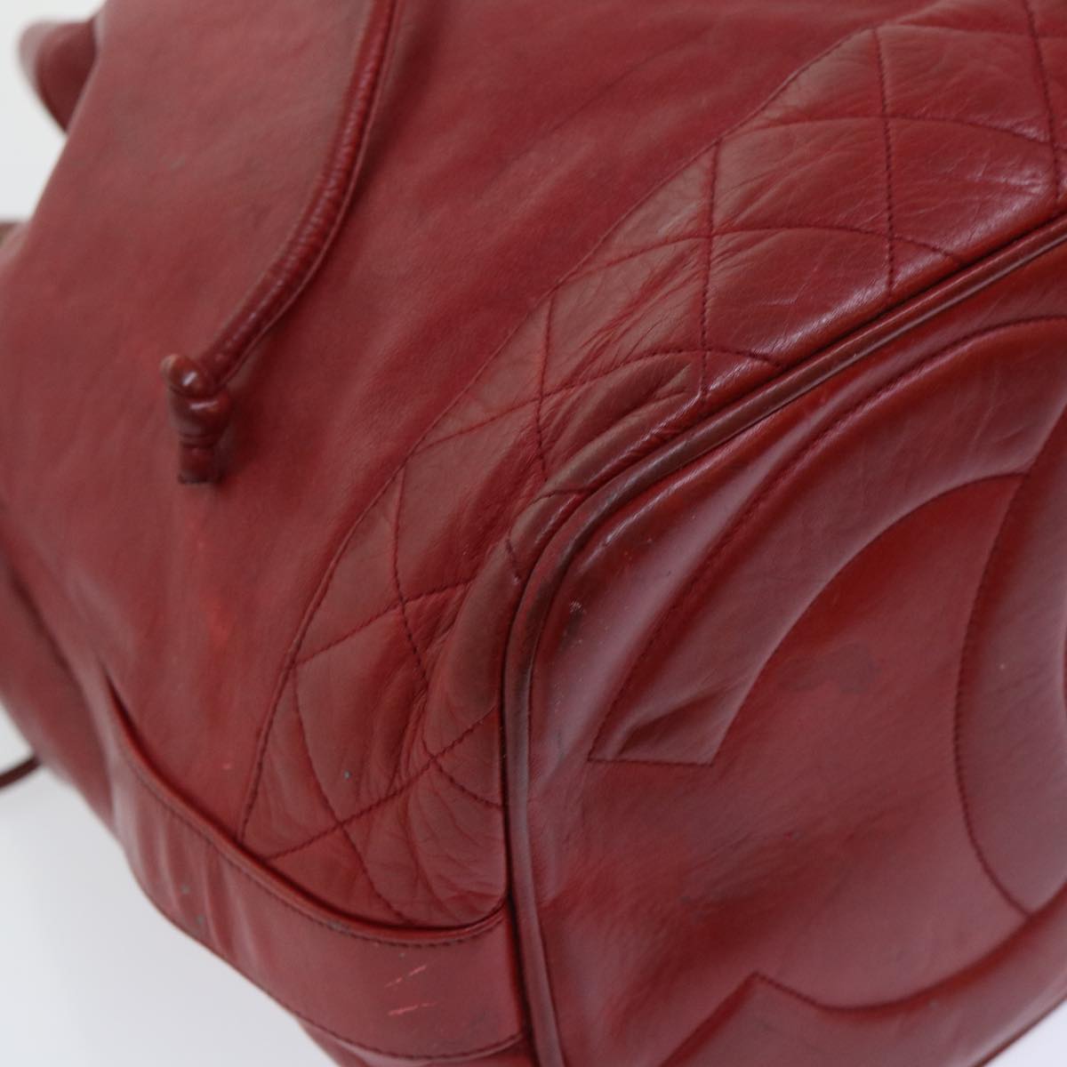 CHANEL Chain Shoulder Bag Lamb Skin Red CC Auth bs7902