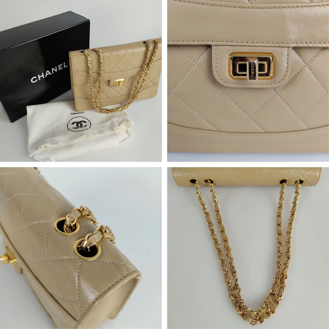 Chanel Timeless Classica vintage shoulder bag in beige matelasse leather.Made in France in 1989 - 1991.Turn lock closure with engraved logo.Golden metal accessories.Shoulder strap with extendable chain, so it can be on the shoulder or crossed over the body.One external back pocket.Leather interior with one zipped pocket and one open.Its conditions are New, in fact it does not have any obvious scratches or stains.Only small imprints in the skin that are hardly visible.Complete with box and dustbag.DIMENSIONS: L: 26cm - H: 19cm - W: 8cmAll our items are selected, carefully sanitized and ated by our experts.CODE: 5136B850BRANDS: ChanelMODEL: Timeless Classic turn lock bag in beige leatherMADE IN: France CODE: 1788707BeigeMATERIAL: LeatherCONDITION: New