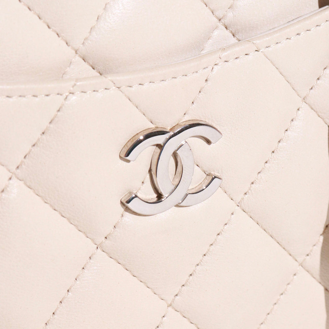 Model: Vintage Material: Smooth quilted leather Cream colour Silver details Dimensions: 21cm x 11cm x 5cm White leather interior lining External patch pocket Internal zipped pocket With hologram and card CHANEL logo on the zipper