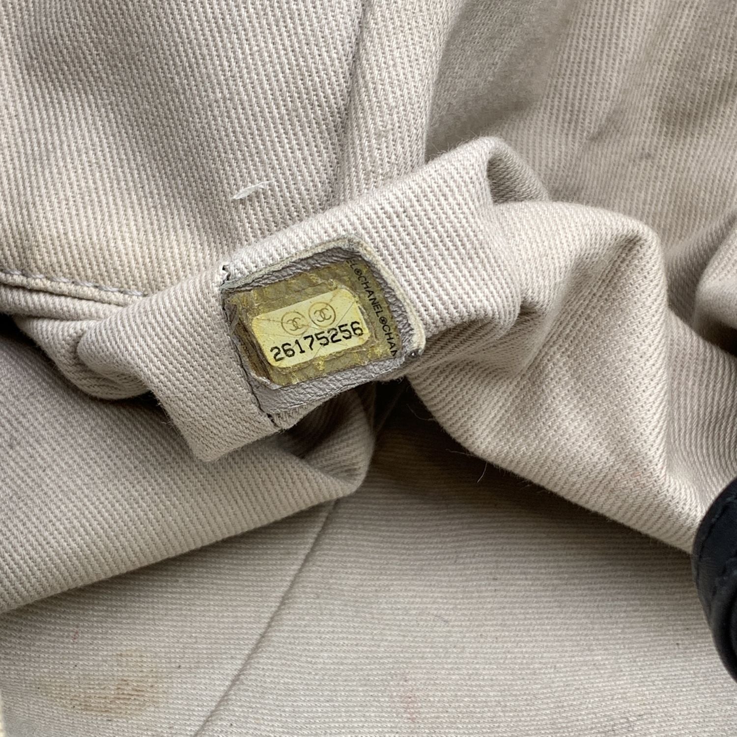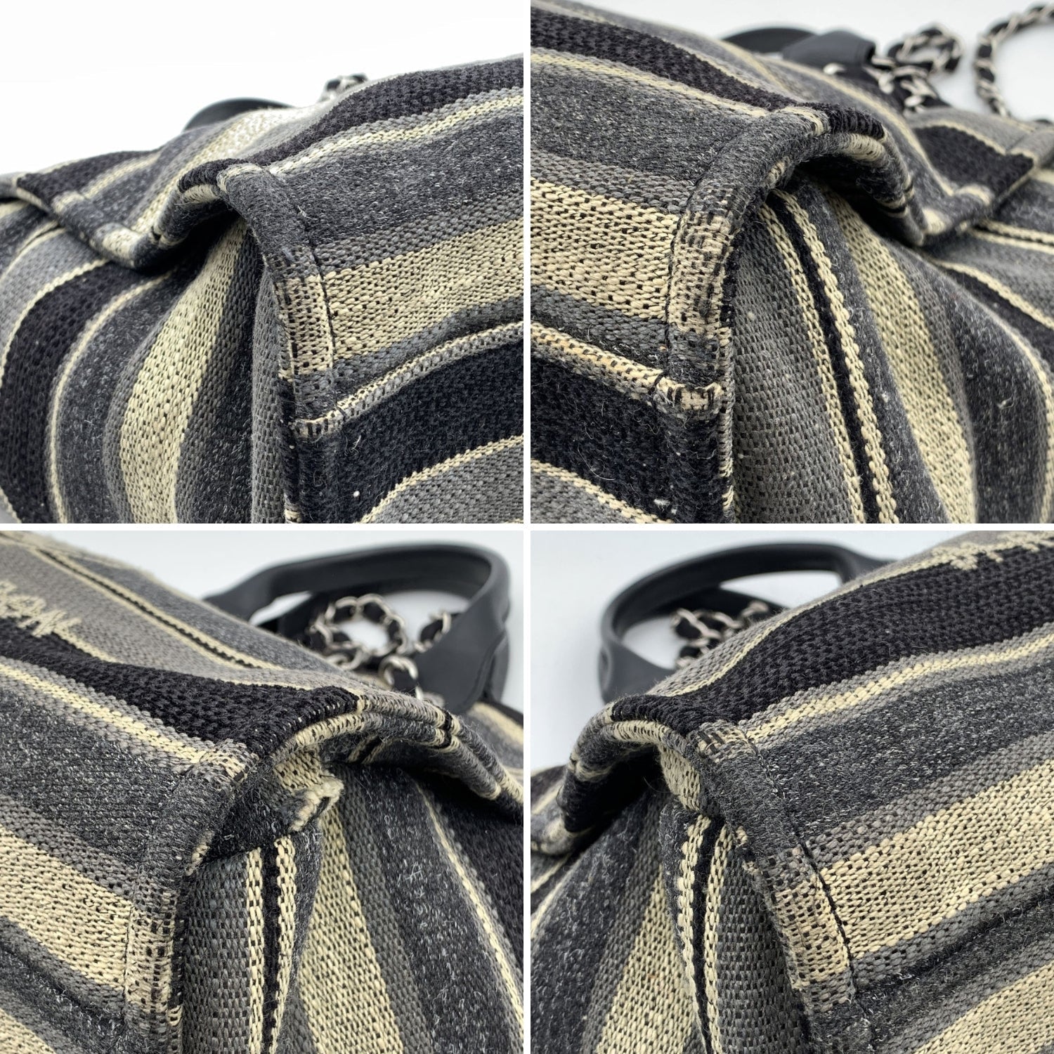 Beautiful Chanel 'Deauville' Tote, Crafted In Black, Grey And Beige Striped Canvas With a White 'Chanel Cc31, Rue Cambon - Paris' Logo.