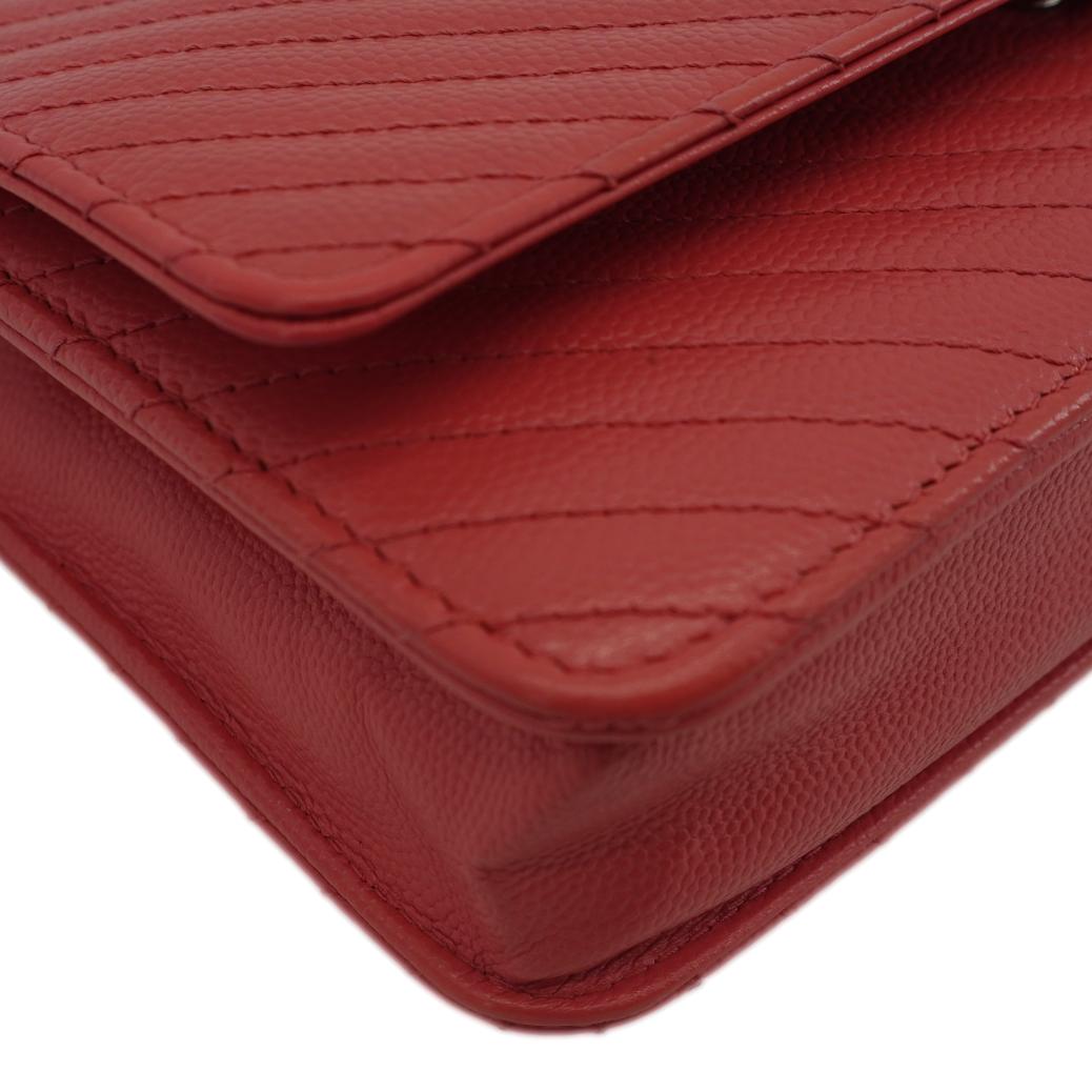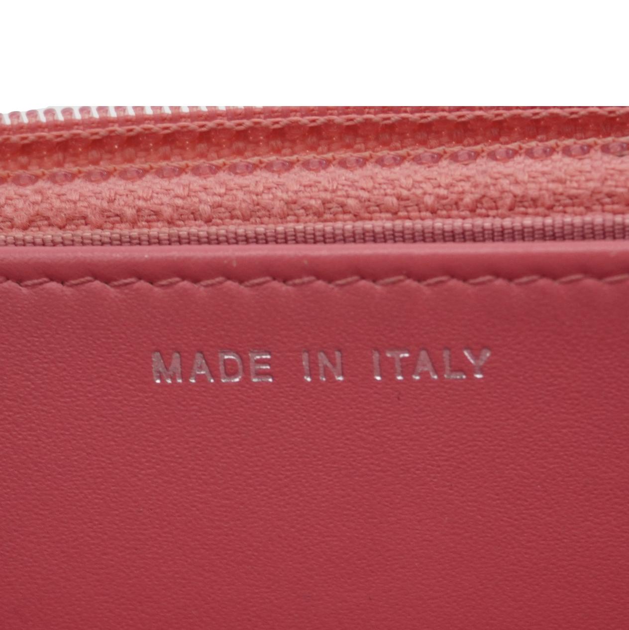 The Chanel Woc Quilted Leather Wallet on Chain Crossbody Bag in pink features luxurious quilted leather, a signature chain strap, and the iconic Chanel logo, offering a chic and versatile accessory for any occasion.