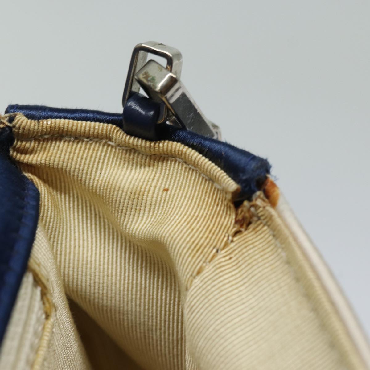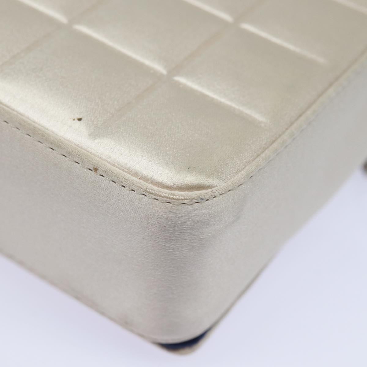 CHANEL Choco Bar Line Chain Shoulder Bag Satin Blue Beige CC Auth 84220