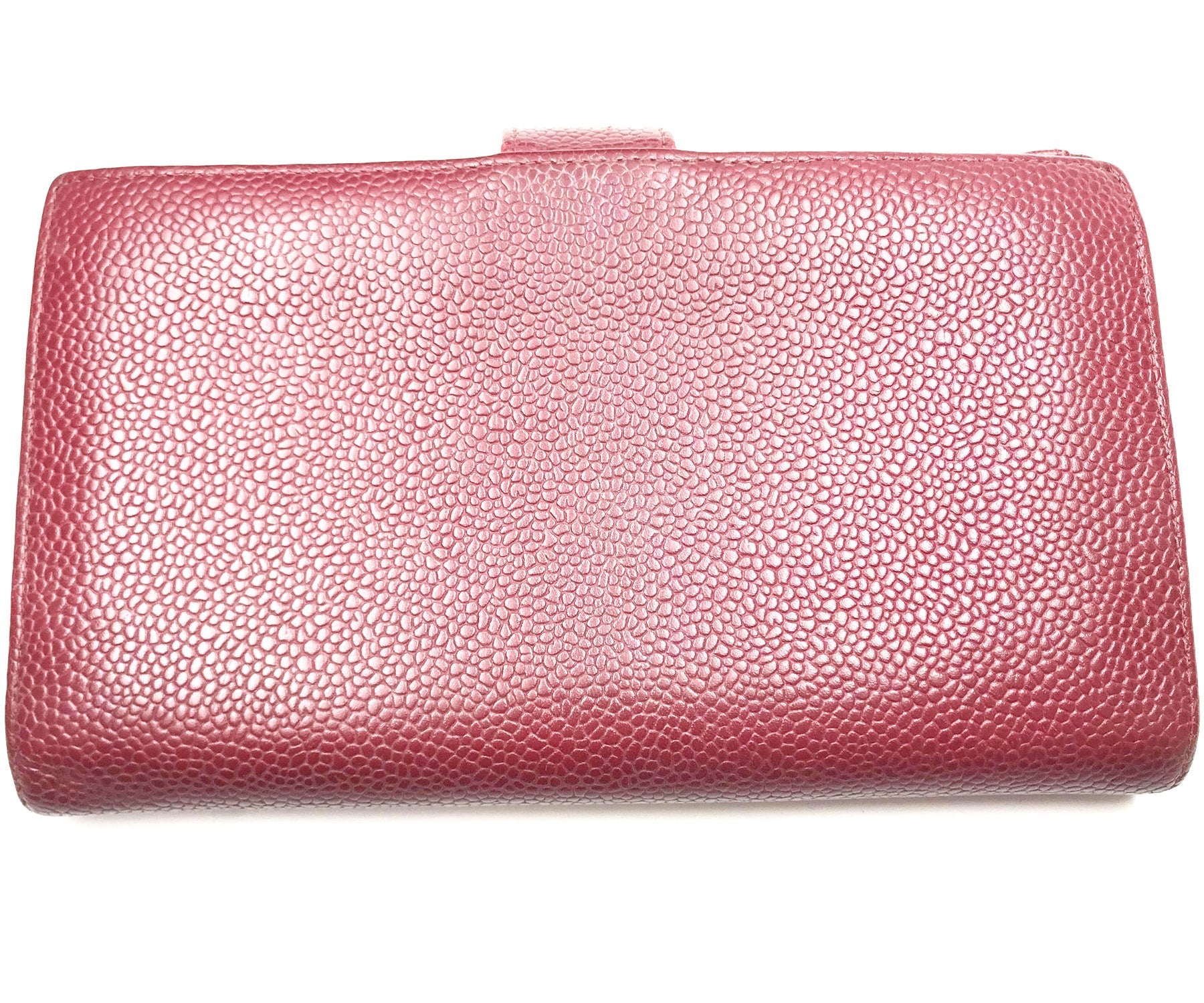 Chanel Classic Burgundy Caviar Bi Fold Long Wallet.