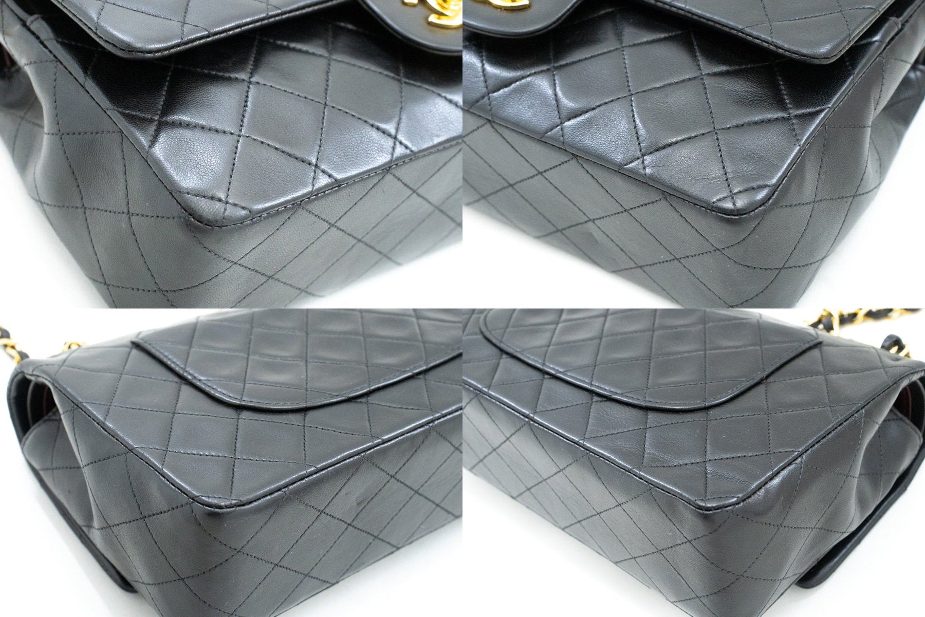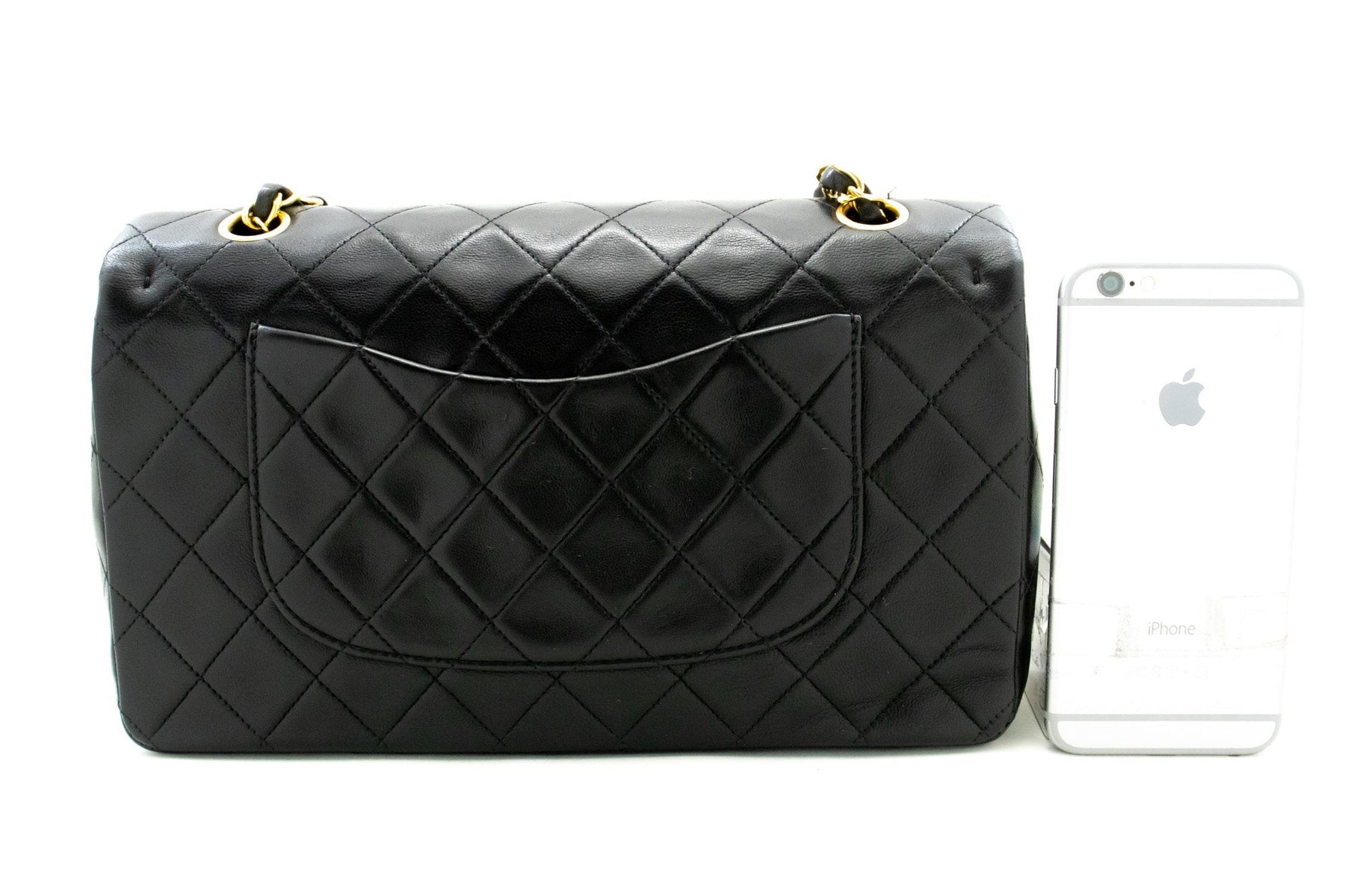 An CHANEL Classic Double New 10" Chain Shoulder Bag Black made of black Lambskin.